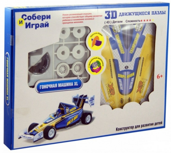 3D Пазл механический "Гоночная машина XL" (43 элемента, с фрикционным механизмом)