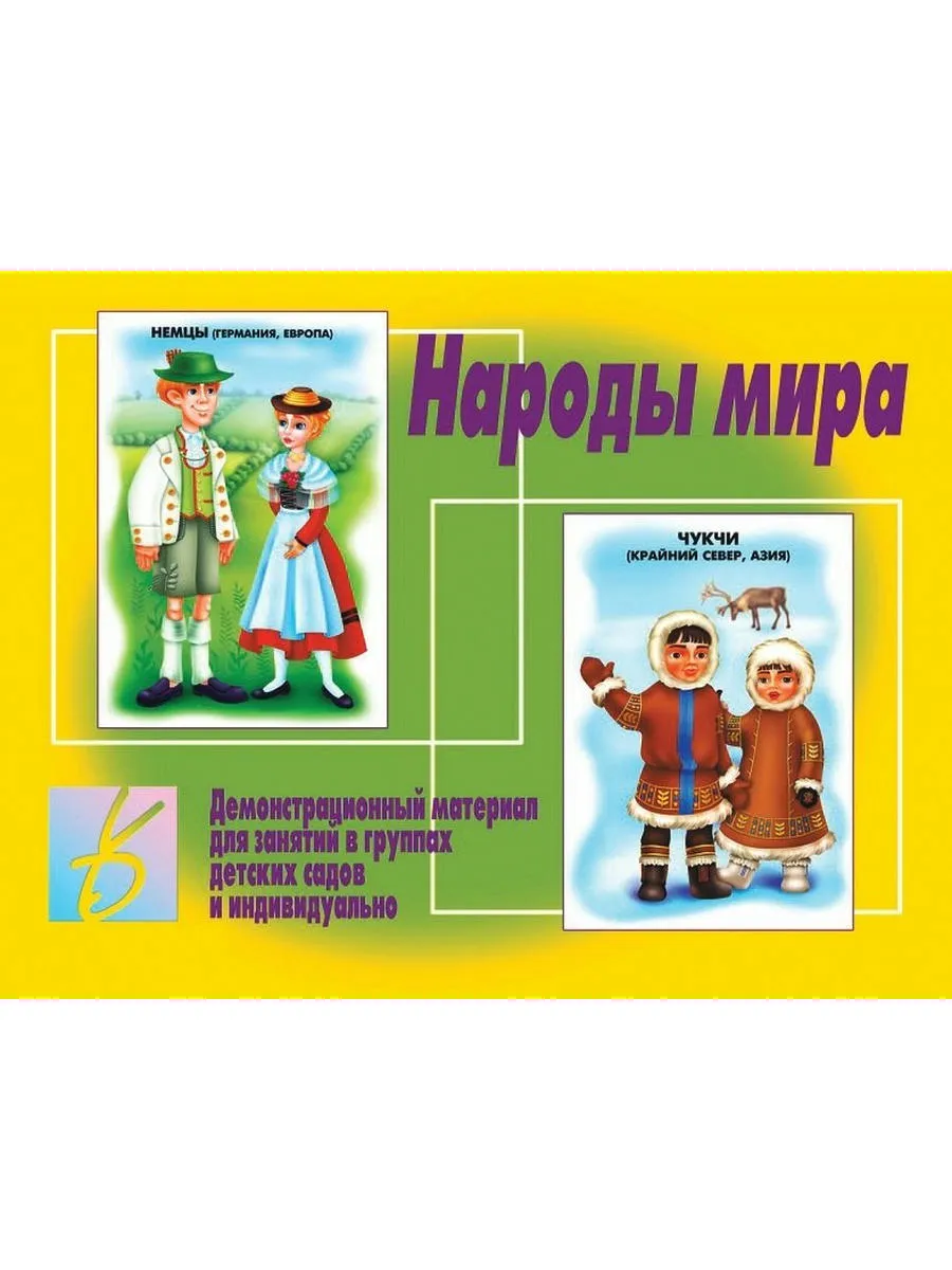 В комплекте – 12 разрезных листов (24 карточки). Над картинками написаны названия народов и место их проживания. Таким образом, дети знакомятся с национальностями, странами и континентами. Сопровождайте демонстрацию карточки рассказом об особенностях местности, языке, обычаях, окружающей природе. Занятия нацелены на формирование у детей понятия единства человека и природы, многообразия и уникальности живущих на планете людей.