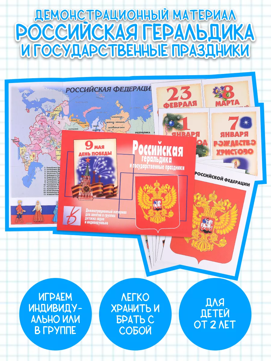 Демонстрационный материал «Российская геральдика и государственные праздники» — это обучающий набор карточек, который поможет детям познакомиться с символами и историей России.