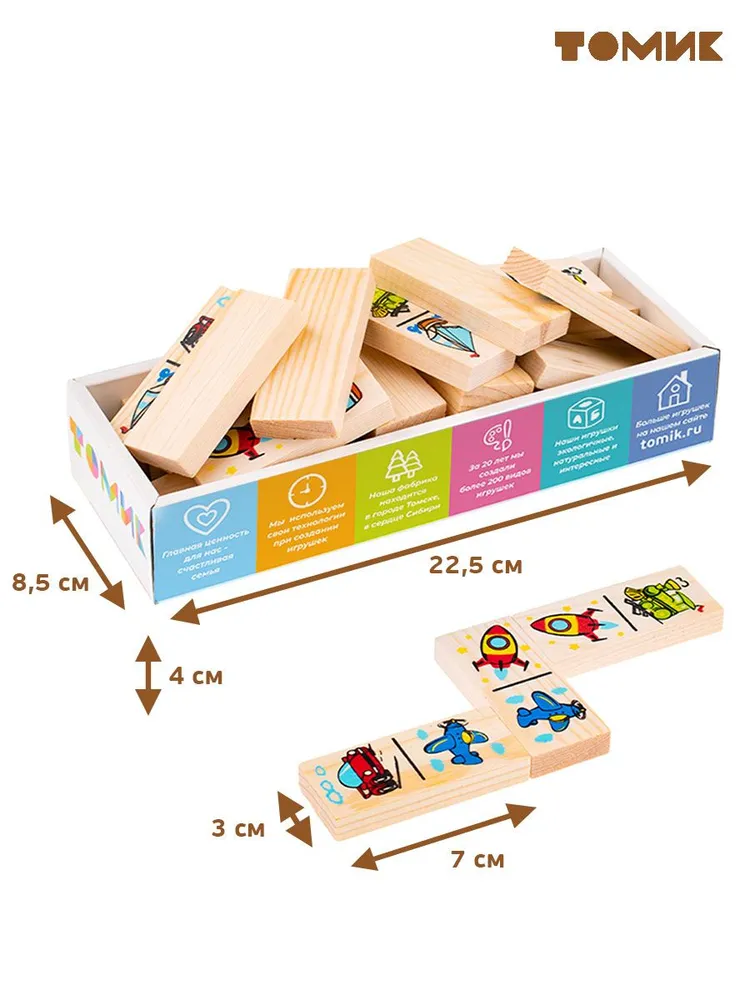 Домино "Транспорт" (28 элементов, дерево) 5555-2, Томик