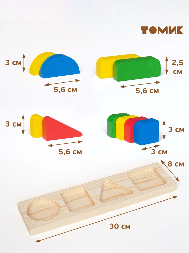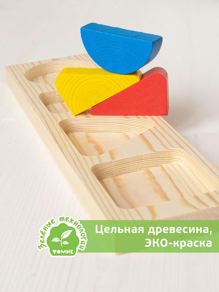 Задачей фабрики Томик является здоровье и безопасность вашего ребенка, поэтому при производстве игрушек и товаров для самых маленьких мы используем экологичные, абсолютно безвредные для детей материалы, развивающая рамка-вкладыш изготовлена из натурального дерева, окрашенных красками на водной основе насыщенных цветов. Тактильный контакт с этим материалом оказывает положительное воздействие на сенсорное развитие ребенка, приятные на ощупь. Детские игрушки не больших размеров, для того чтобы ребенку было удобно их брать в ручки.