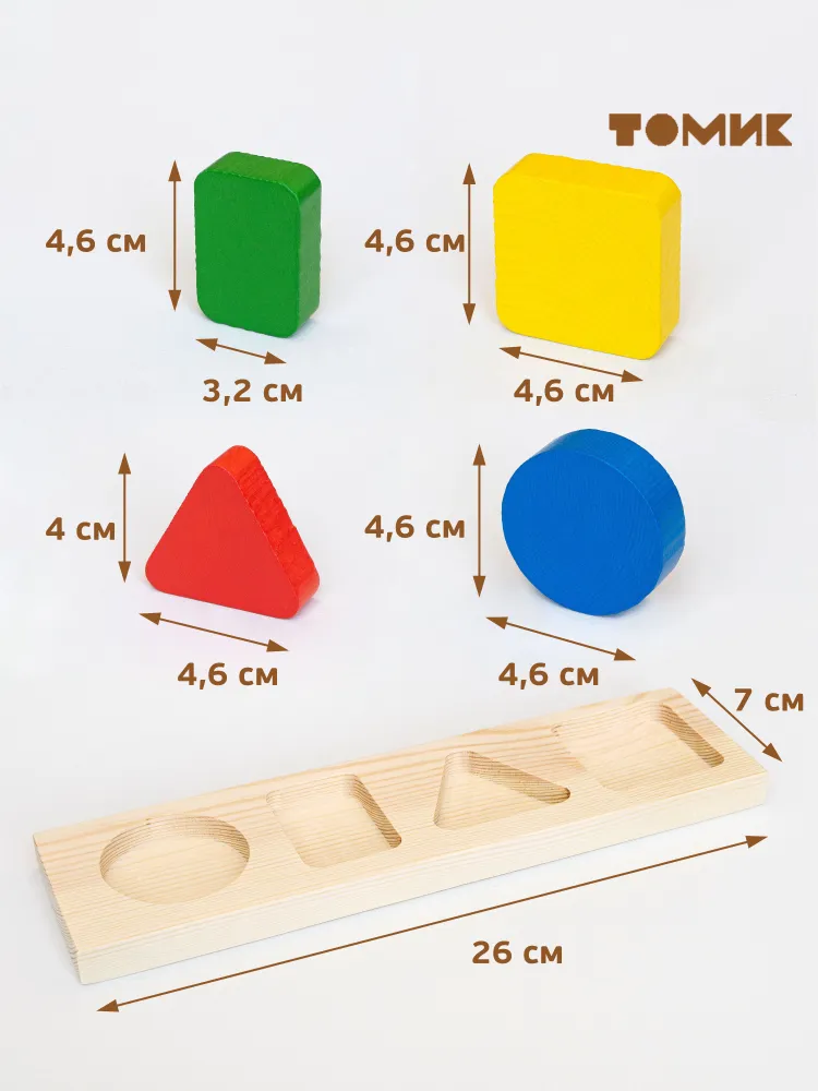 Задачей фабрики Томик является здоровье и безопасность вашего ребенка, поэтому при производстве игрушек и товаров для самых маленьких мы используем экологичные, абсолютно безвредные для детей материалы, развивающая рамка-вкладыш изготовлена из натурального дерева, окрашенных красками на водной основе насыщенных цветов. Тактильный контакт с этим материалом оказывает положительное воздействие на сенсорное развитие ребенка, приятные на ощупь. Детские игрушки не больших размеров, для того чтобы ребенку было удобно их брать в ручки.