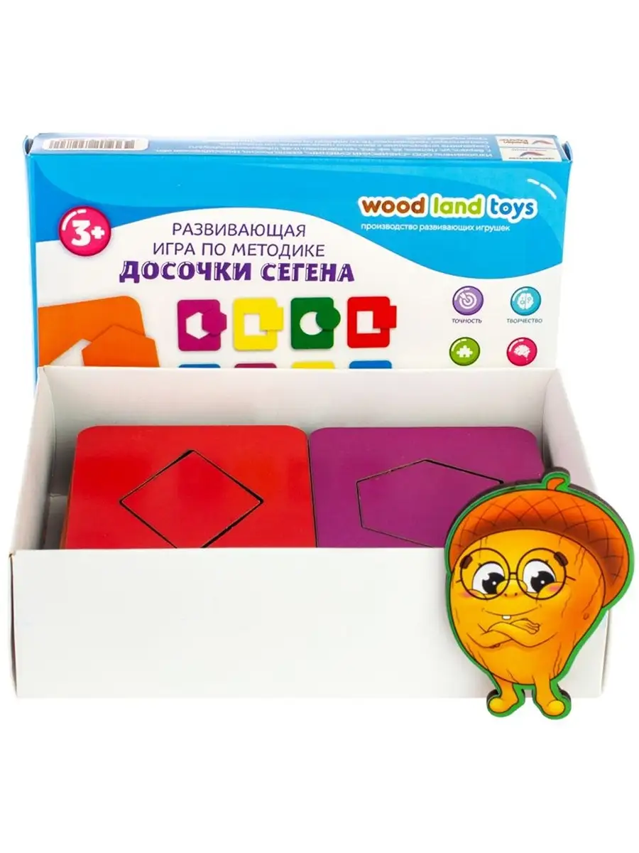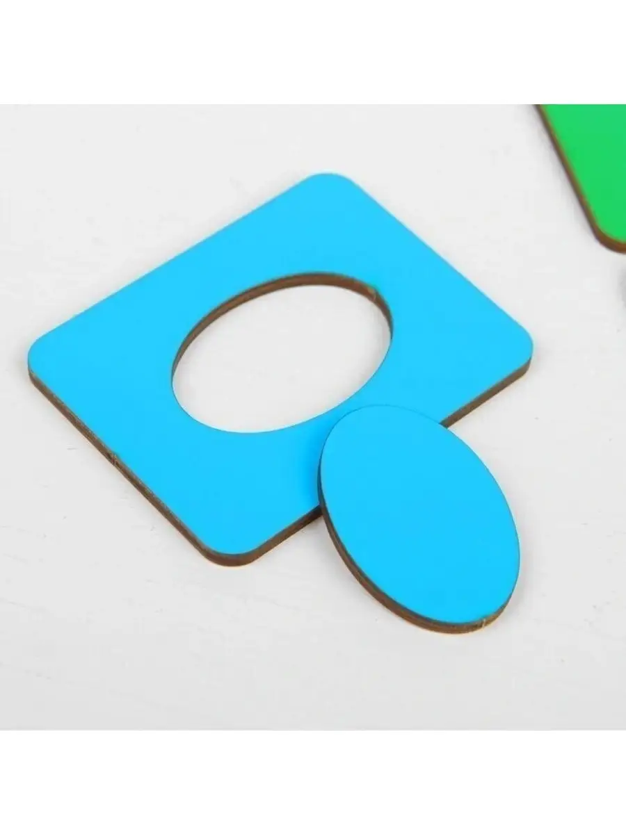 На красочных прямоугольных досочках по центру вырезаны фигурные оконца. Потрогайте, проведите пальцем по контуру оконца, называя геометрическую фигуру. Игровая задача - подобрать нужную по цвету и форме деревянную фигурку и вставить в оконце. Навыки сортировки по заданному признаку тренируют память и внимание, логическое мышление.