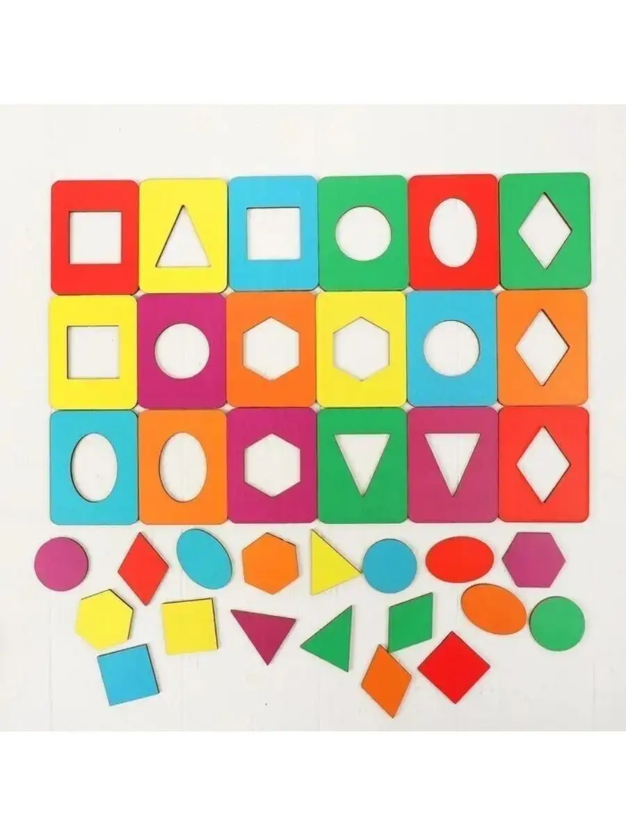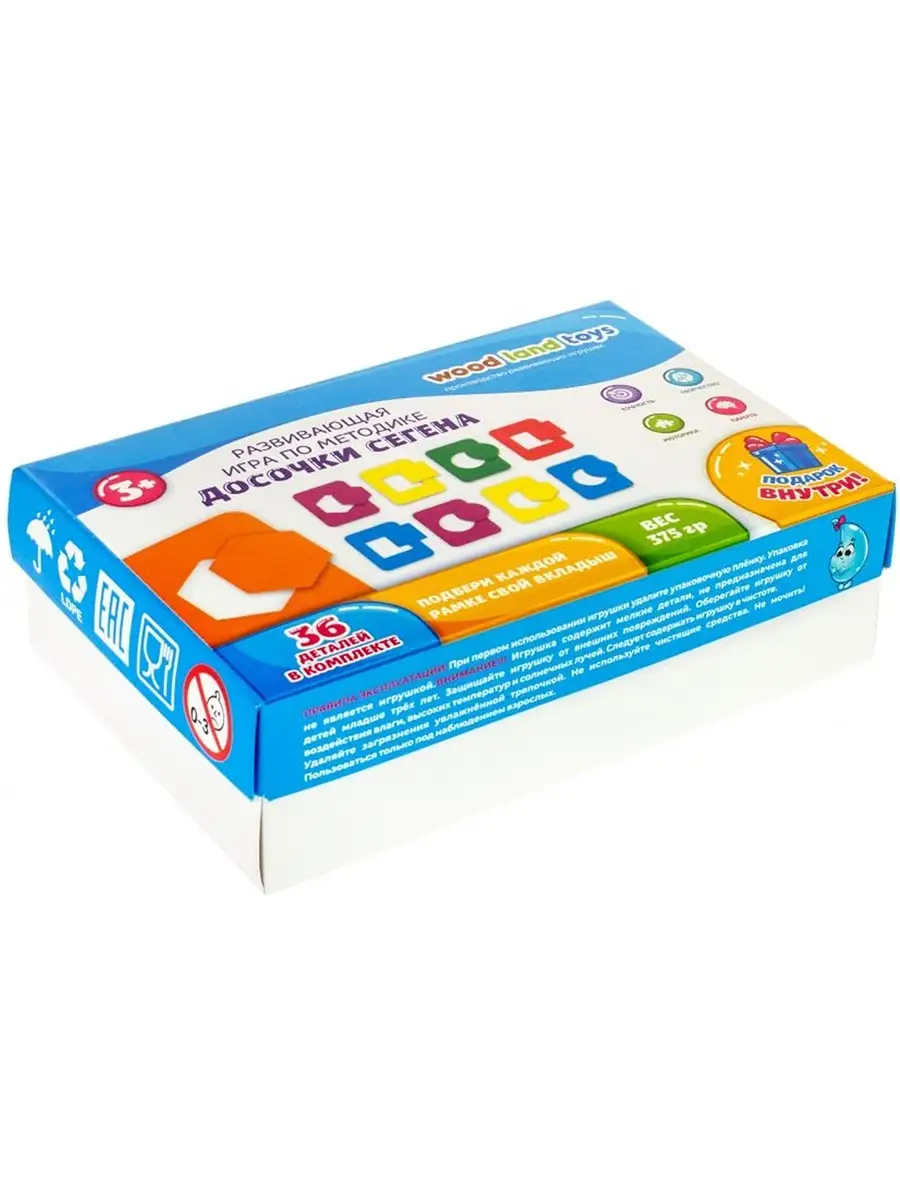 В комплекте: коробочка для хранения, 18 рамок, 18 фигур - вкладышей.