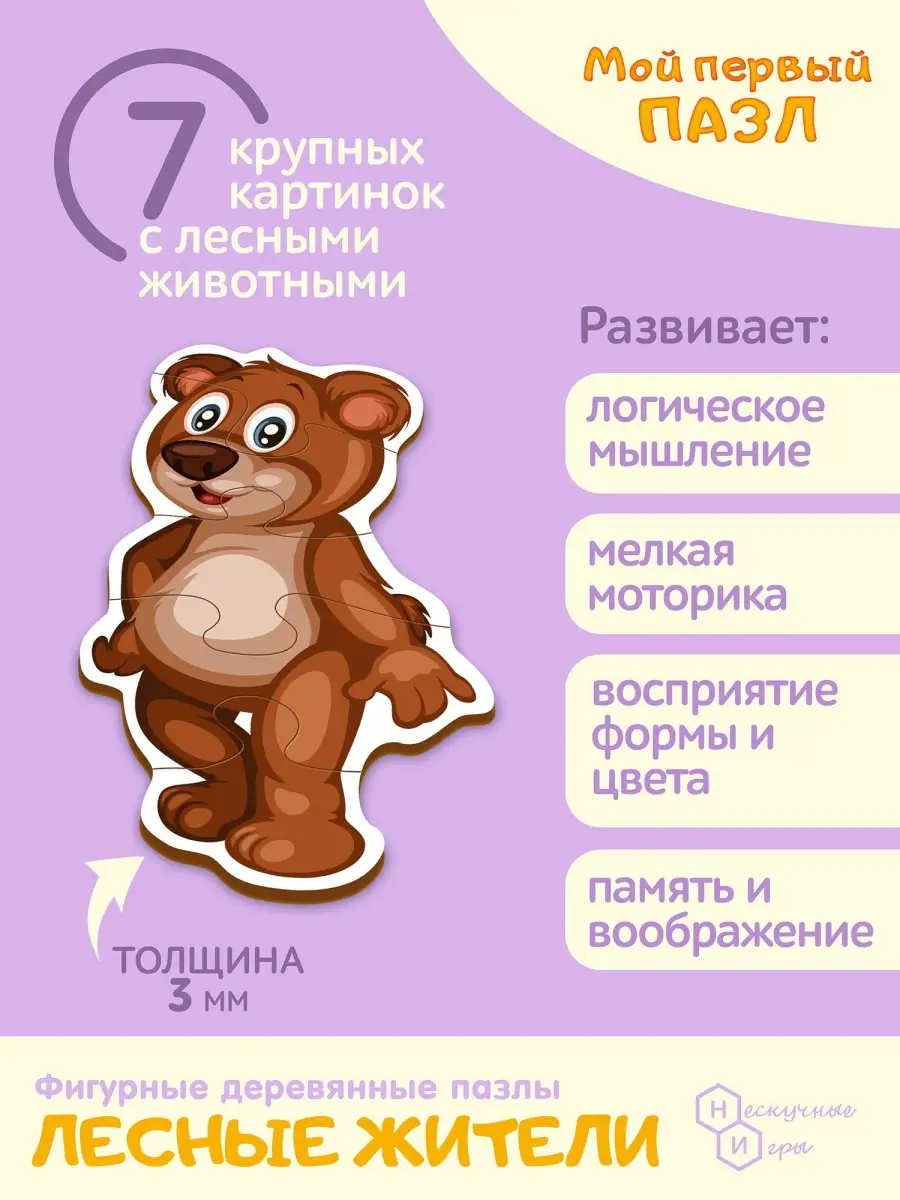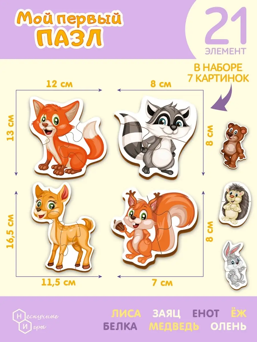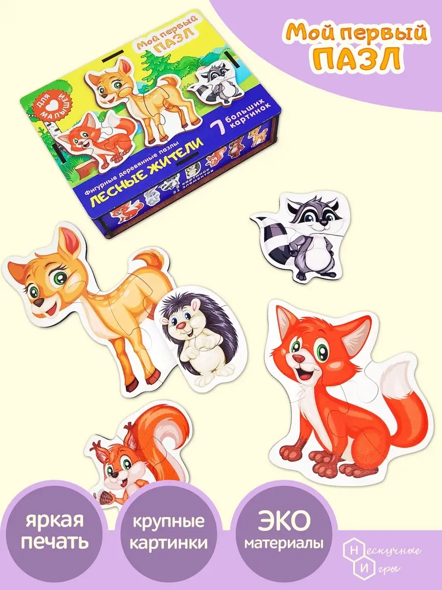 Представляем вам замечательный фигурные пазлы с крупными деталями Лесные жители от бренда Нескучные игры! Эти пазлы станут отличным подарком для вашего малыша, помогая ему весело и увлекательно развиваться.