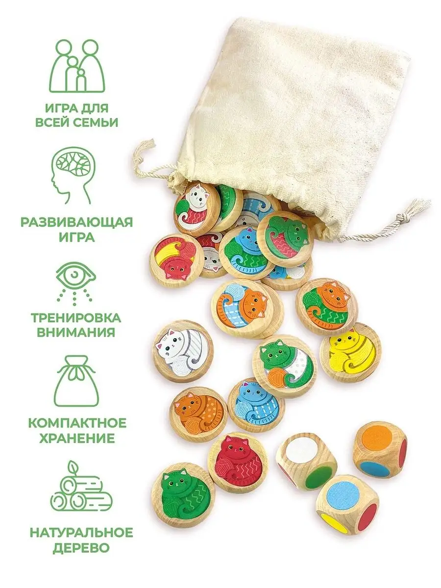 Настольная игра для всей семьи для малышей и их родителей, для мальчиков и девочек, с легкими, но очень любопытными правилами сможет заинтересовать каждого. “Где мой котик” - это не только занятная настольная игра с милыми кошечками, но и полезная развивающая игрушка для тренировки памяти, мелкой моторики и скорости реакции.