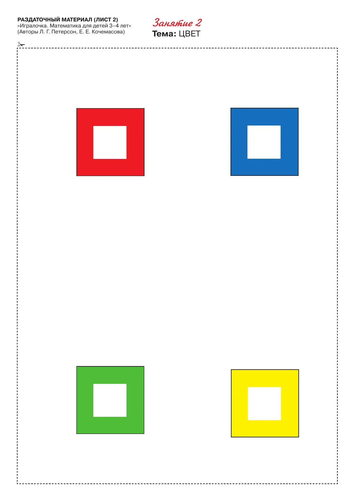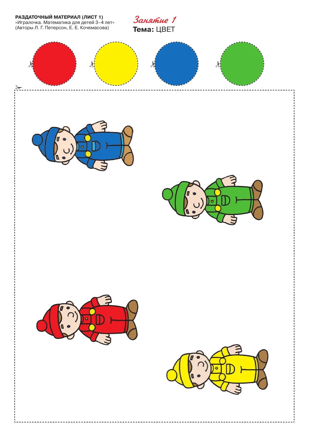 Начиная с первого занятия, нужно по пунктирным линиям вырезать карточки, картинки, геометрические фигуры и складывать в соответствующие конверты. Раздаточный материал рассчитан на использование его одним ребёнком. Раздаточный материал поможет развить у дошкольников мышление, творческие способности, интерес к математике.