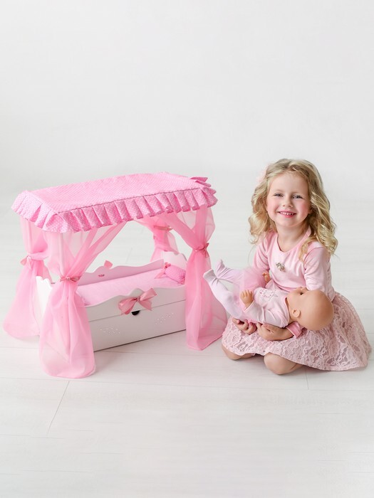 Кроватка с ящиком для хранения аксессуаров отлично подойдёт для сюжетно-ролевой игры в дочки-матери. Такие игры позволяют ребёнку проявить свою фантазию, аккуратность, познакомиться с понятиями ответственности и заботы, развить мелкую моторику рук и почувствовать себя в роли заботливой мамы.