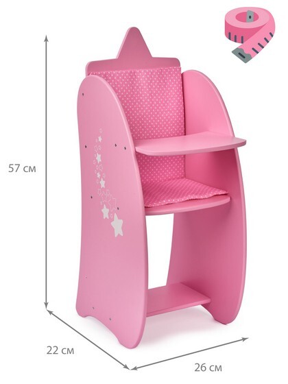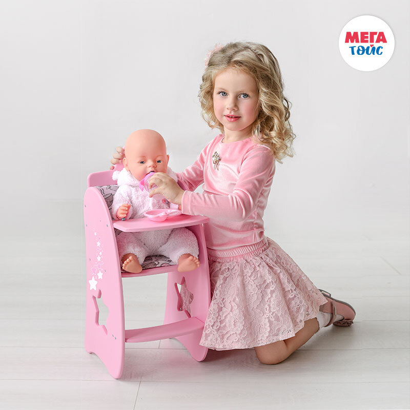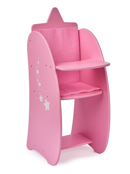 Стульчик для кормления коллекции "Diamond star", понравится каждой девочке. В нем юная мамочка будет с удовольствием кормить своего малыша. Для комфорта куколок, в комплект входит мягкое сиденье со спинкой из 100% хлопка, а стильные вырезы (звездочки) станут украшением интерьера и дополнят коллекцию изысканностью стиля.