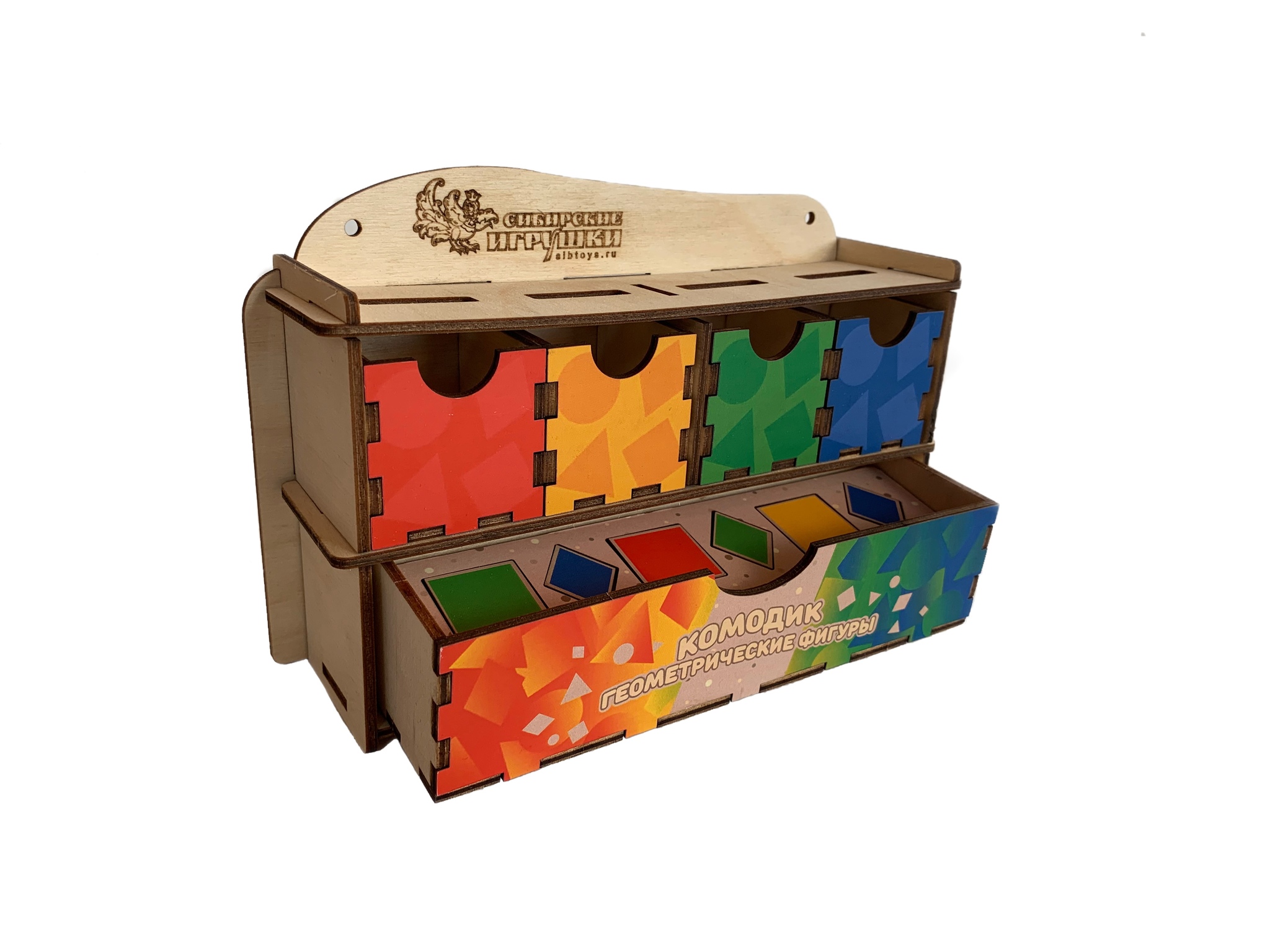 Комодик «Геометрические фигуры» предназначен для детей от 3 лет.