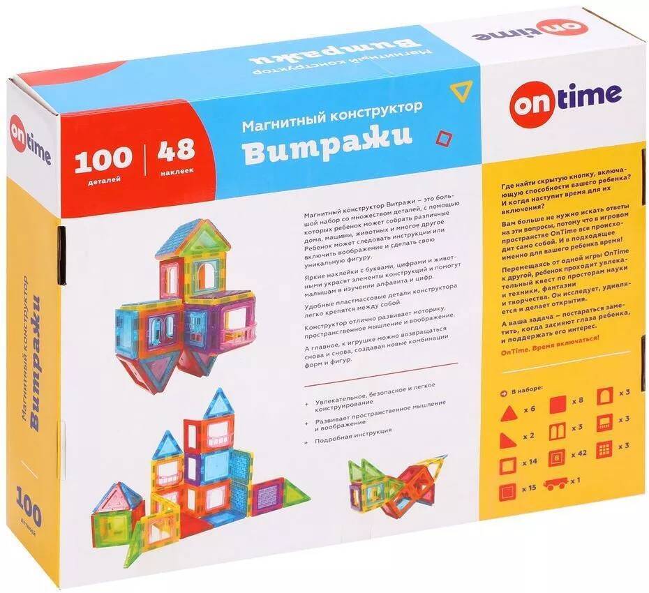 Магнитный конструктор «Витражи» от торговой марки ON TIME поможет ребёнку научиться собирать простейшие и плоские фигуры. Он будет интересен как малышам, так и детишкам постарше. Яркие пластмассовые детали разных цветов легко соединяются друг с другом, их удобно и легко держать детской ручкой.