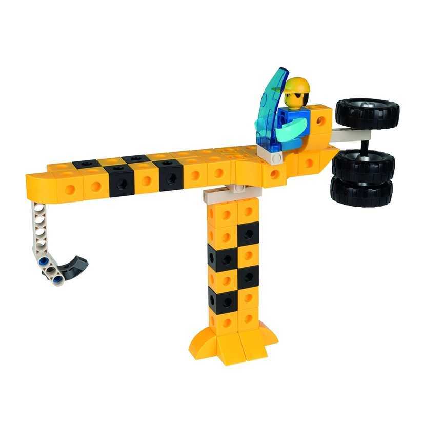 В набор "Строительная техника" из серии "Собери кубики" входит 120 деталей: уникальные кубики, призмы, штифты, балки, колеса из которых ребенок может собрать 10 различных моделей строительных машин, а также любую конструкцию, подсказанную ему фантазией.