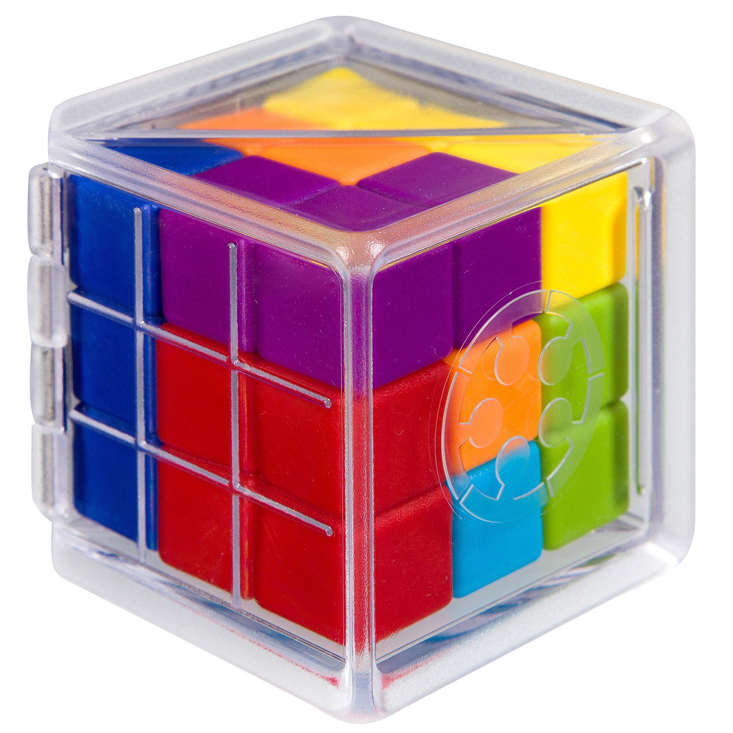 Откройте прозрачный куб, чтобы преобразовать его из футляра для хранения в игровое поле. В игру входит буклет с 80 3D-заданиями и их решениями.