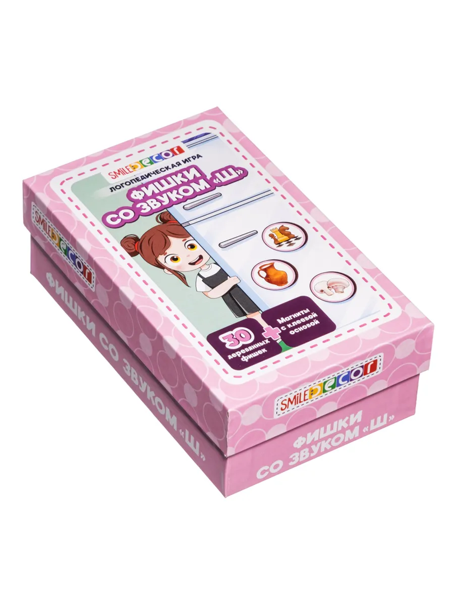 Логопедическая игра "Фишки со звуком Ш", магнитная игра с кубиком, игровое пособие для развития и постановки речи, автоматизация звука "Ш", 30 деревянных фишек и 30 магнитов с клеевой основой.