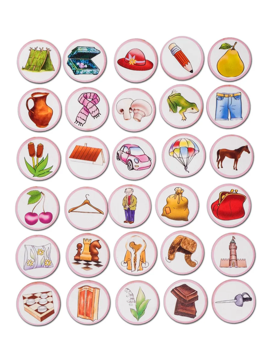 5. Игра "Угадай по описанию". Разложите фишки на столе. Ведущий описывает одну из картинок, не называя ее. Задача игрока - назвать картинку, которую описывает ведущий.