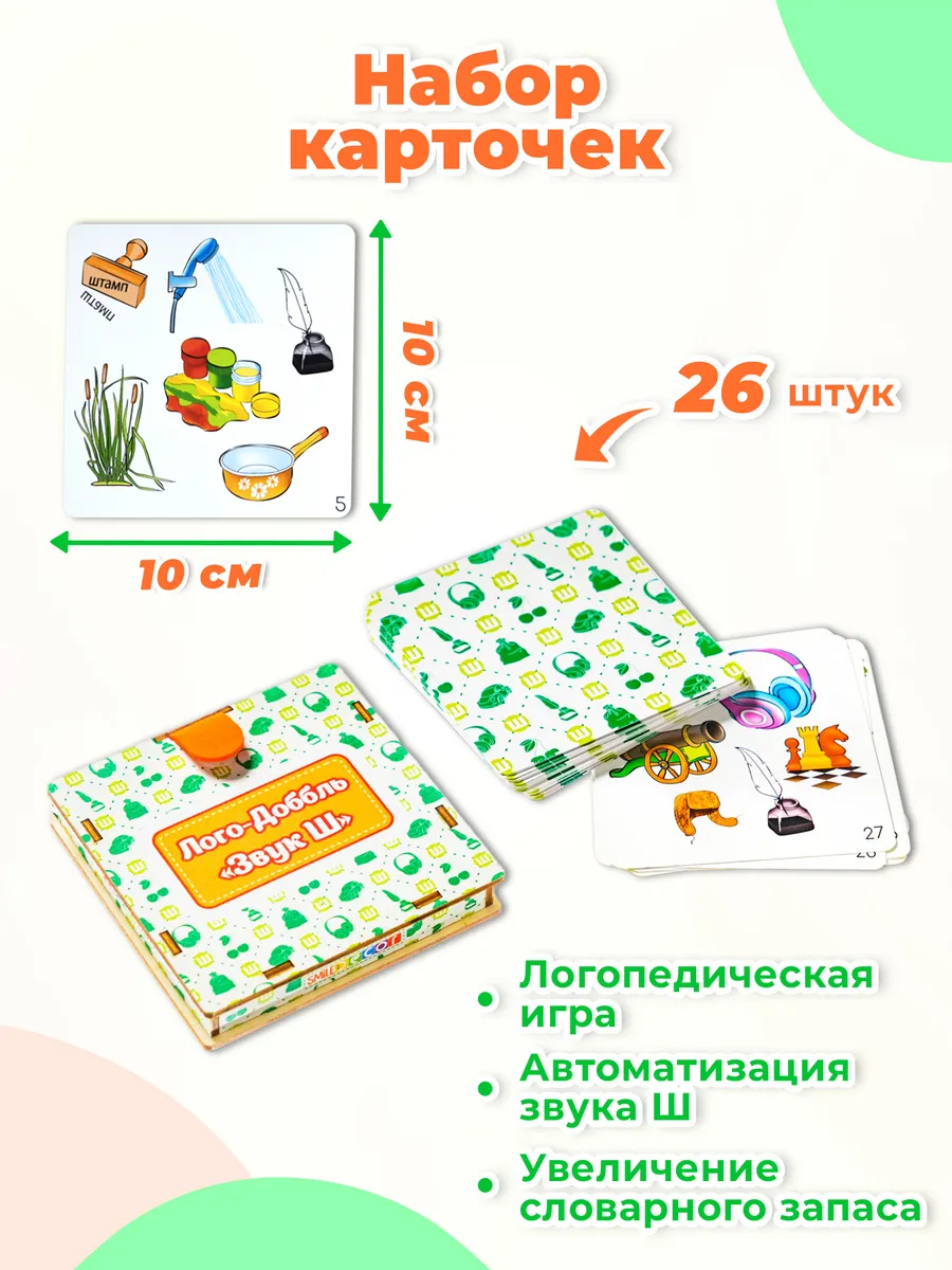 Логопедическая игра "Лого-доббль. Звук Ш" - это уникальное пособие для развития правильной речи у детей от 3 лет. Игра создана для автоматизации звука Ш, что способствует улучшению произношения и общей речевой активности.