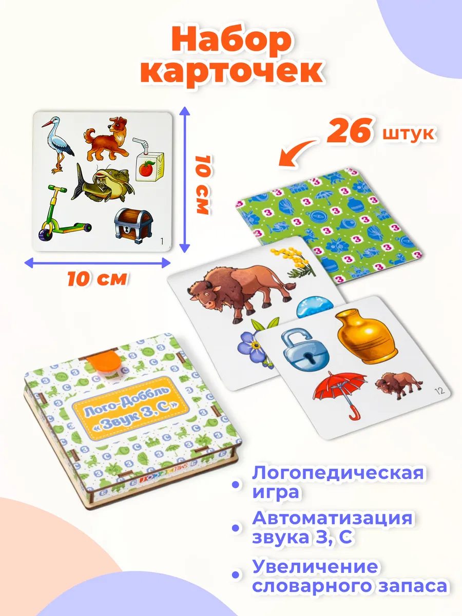 Логопедическая игра "Лого-доббль. Звук З, С" - это уникальное пособие для развития правильной речи у детей от 3 лет. Игра создана для автоматизации звука З и С, что способствует улучшению произношения и общей речевой активности.