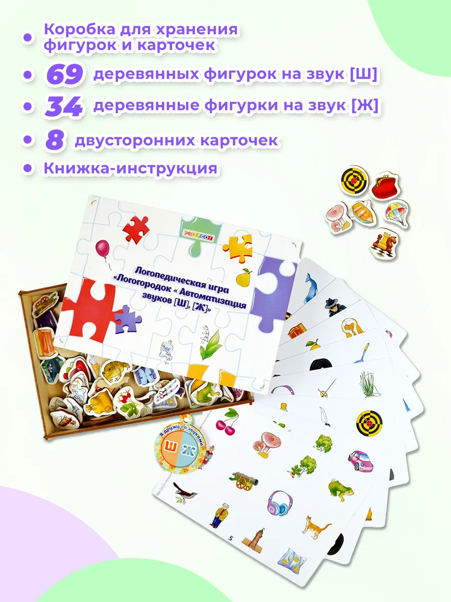 Логопедическая игра "Логогородок: Автоматизация звуков Ш и Ж" - это уникальное пособие для развития правильной речи у детей от 3 лет. Игра создана для автоматизации звуков Ш, Ж, что способствует улучшению произношения и общей речевой активности.