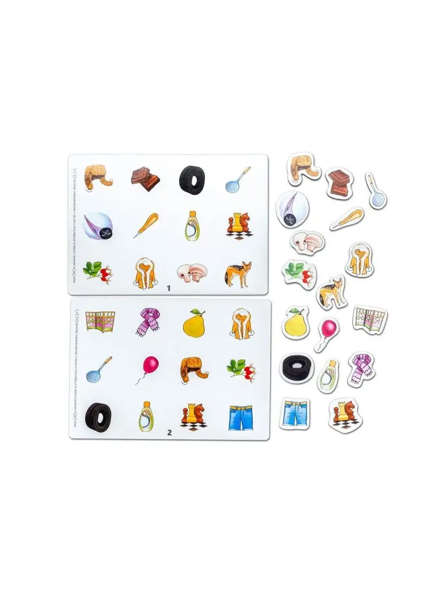 Вариант 2. Предложите ребенку правильно назвать все картинки на карточке и закрыть их соответствующими фигурками картинками вниз. После того, как закроются все картинки на карточке, предложите ребенку вспомнить и назвать, какие картинки "прячутся" под перевернутыми фигурками. Если картинка названа правильно, ребенок получает право перевернуть фигурку картинкой вверх. Игра продолжается до тех пор, пока все фигурки не будут перевернуты картинками вверх.