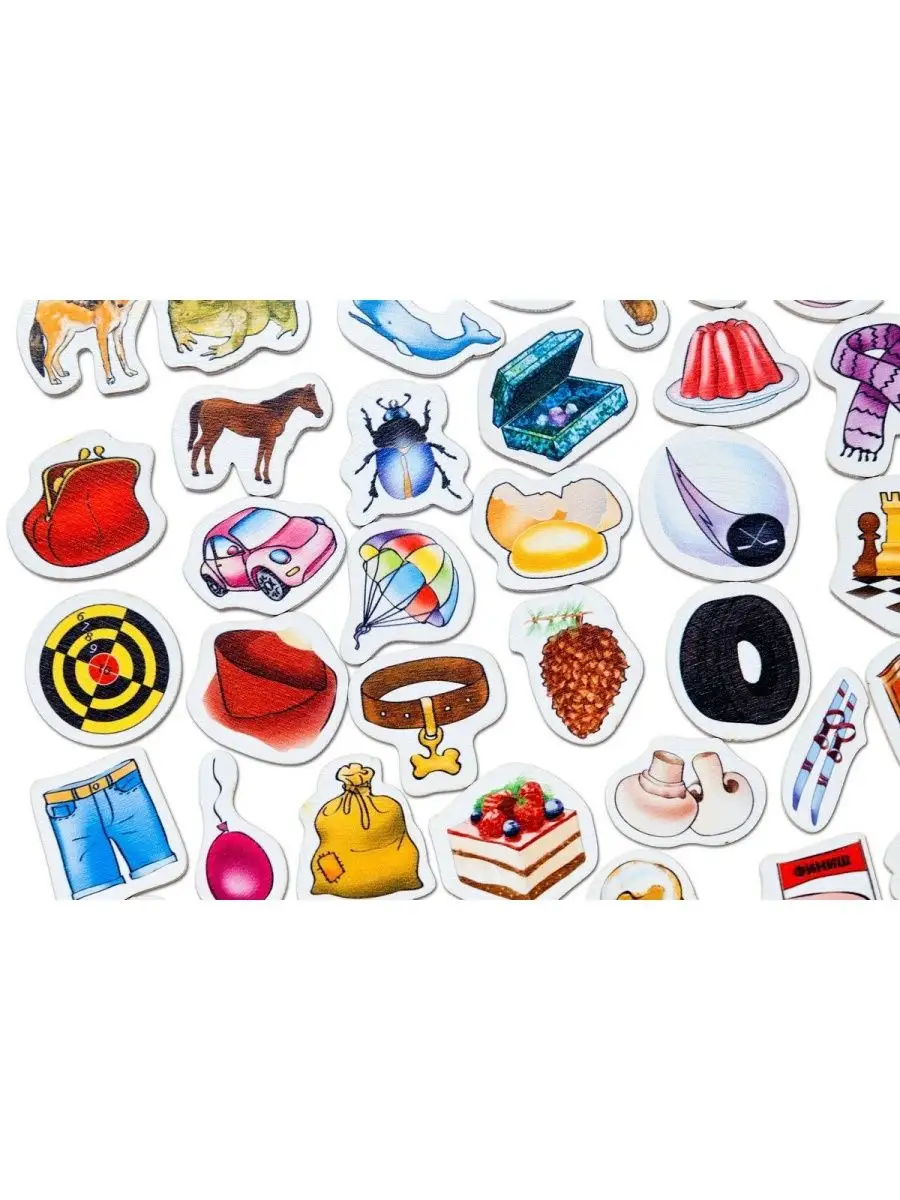 Вариант 1. Предложите ребенку правильно назвать все картинки на карточке и закрыть их соответствующими фигурками.