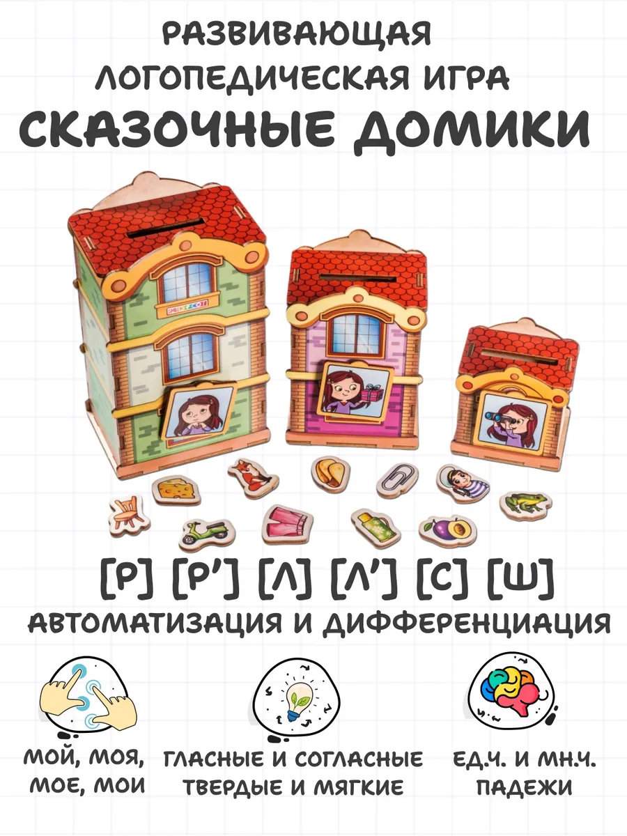 Сказочные домики для детей - отличная дидактическая игра для подготовки к школе детей. Логопедическое пособие предназначено для автоматизации звуков [Р], [Р’], [Л], [Л’], [С], [Ш];.