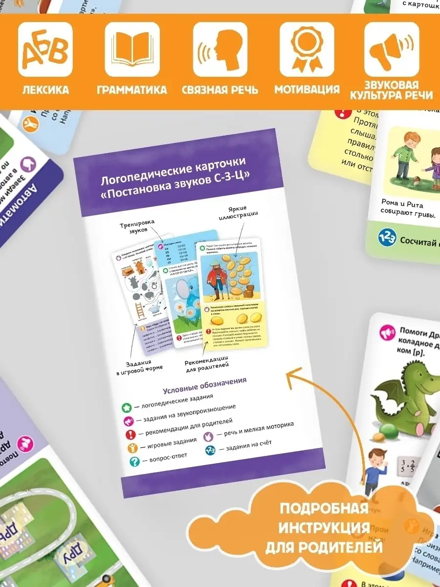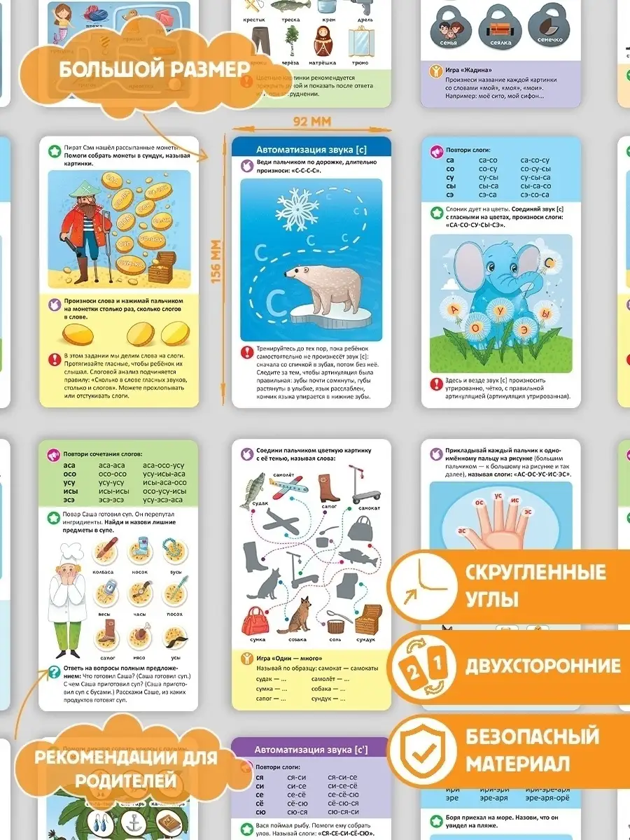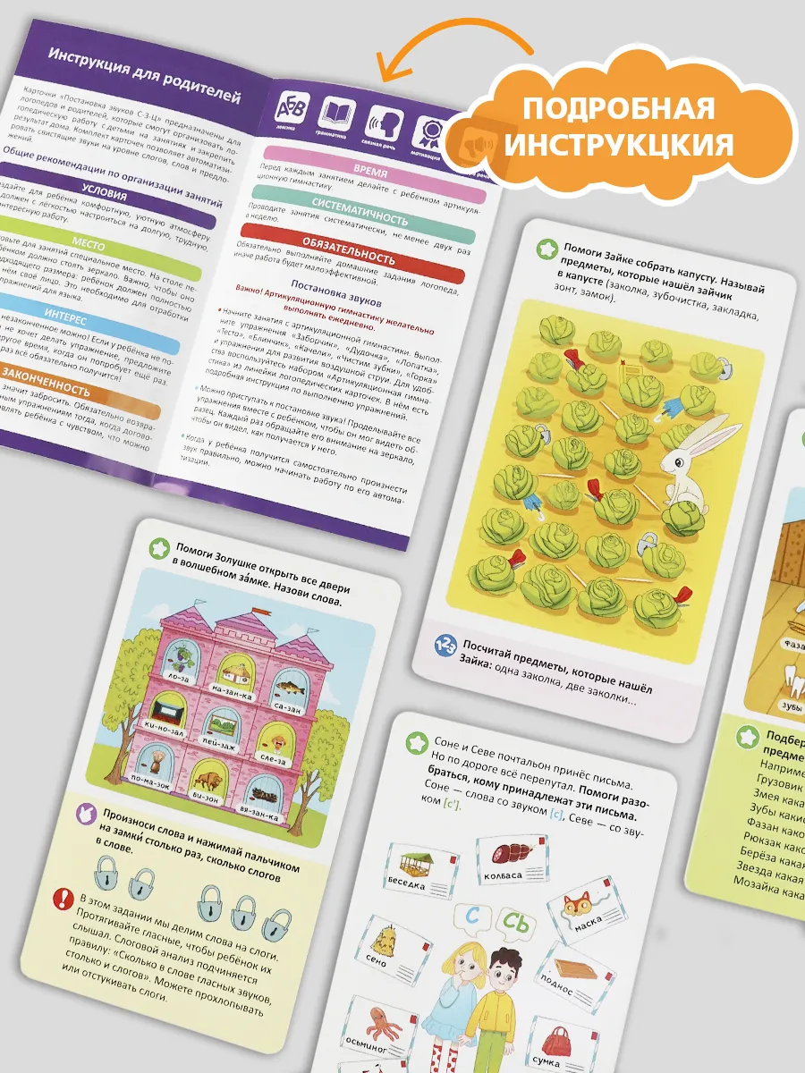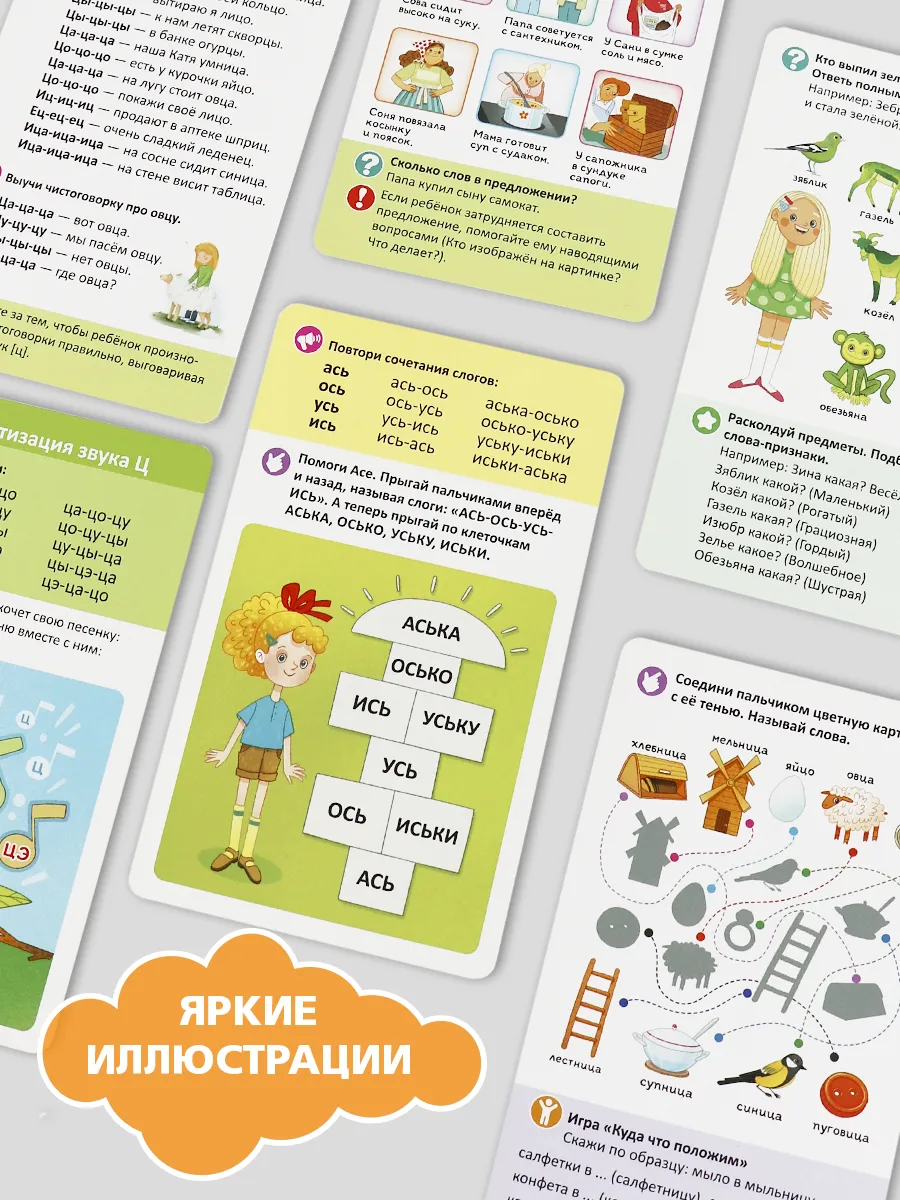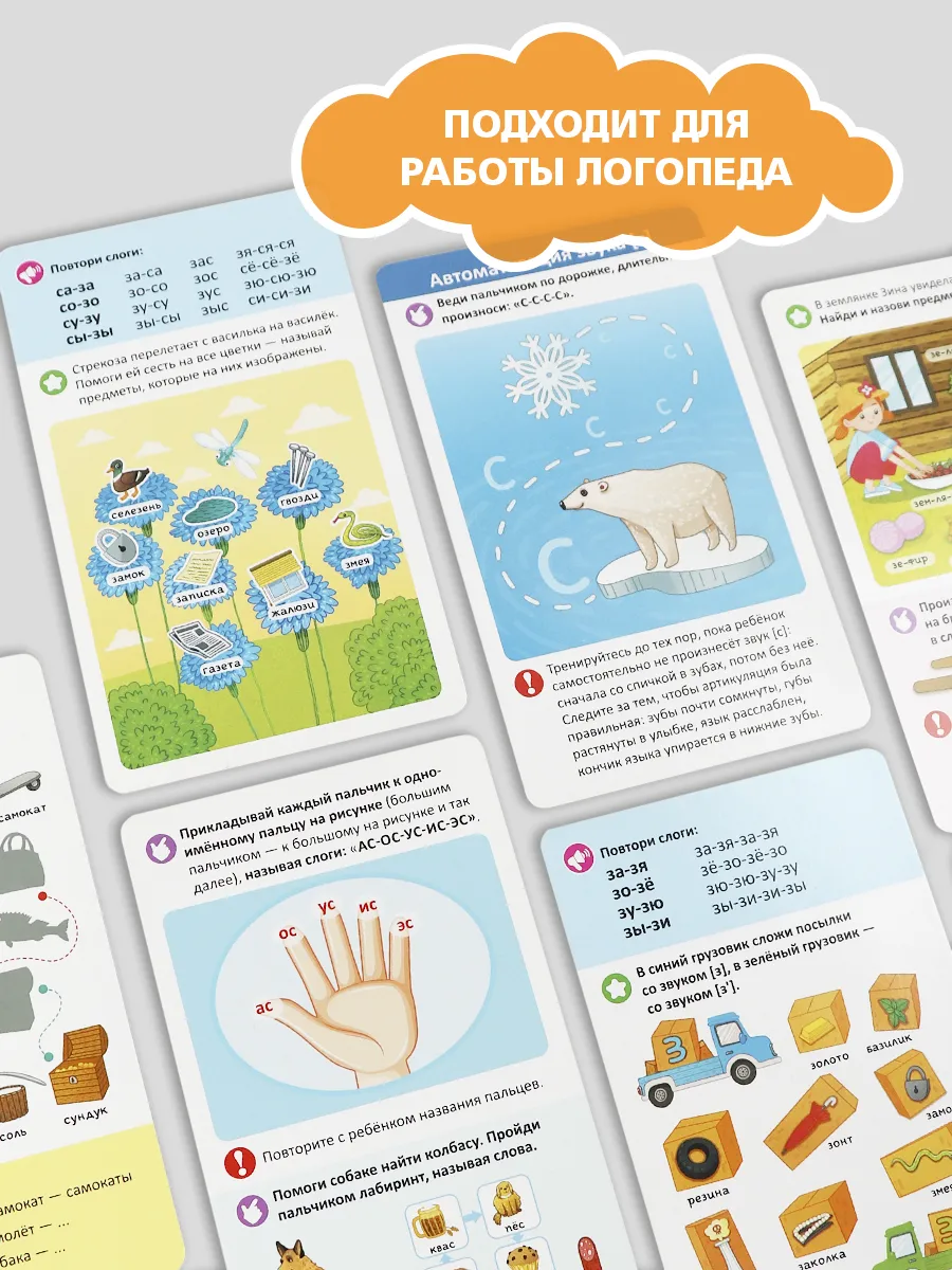 Умные карточки, которые помогут вашему малышу стать настоящим вундеркиндом с пелёнок. Карточки разбиты на наборы по темам, которые направлены на постановку и автоматизацию звуков, предлагают различные упражнения для артикуляционной гимнастики, способствуют запуску речи.