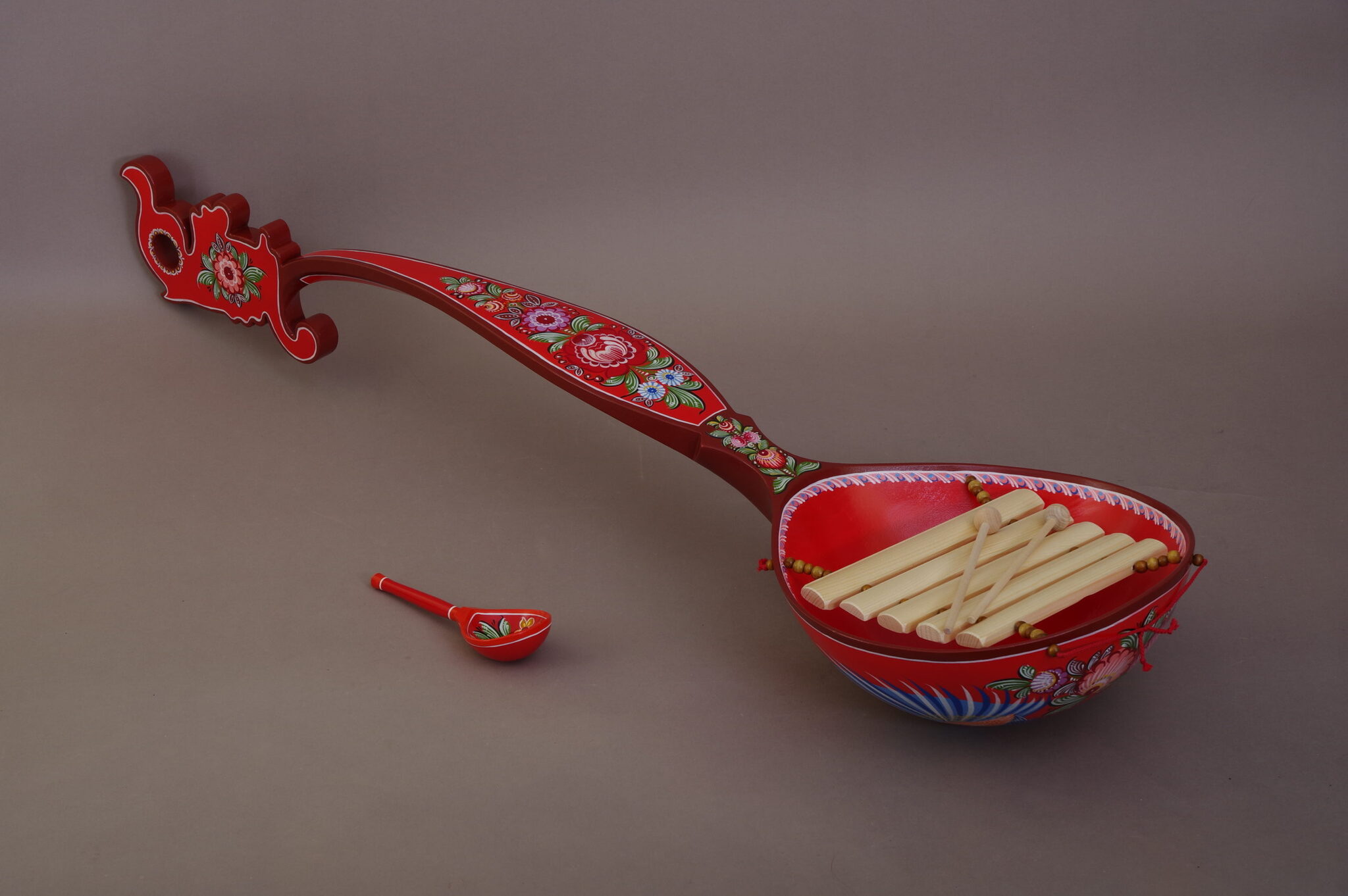 Внутрь черпака ложки закреплен ксилофон (пять пластин), настроенный в тональности До-мажор.