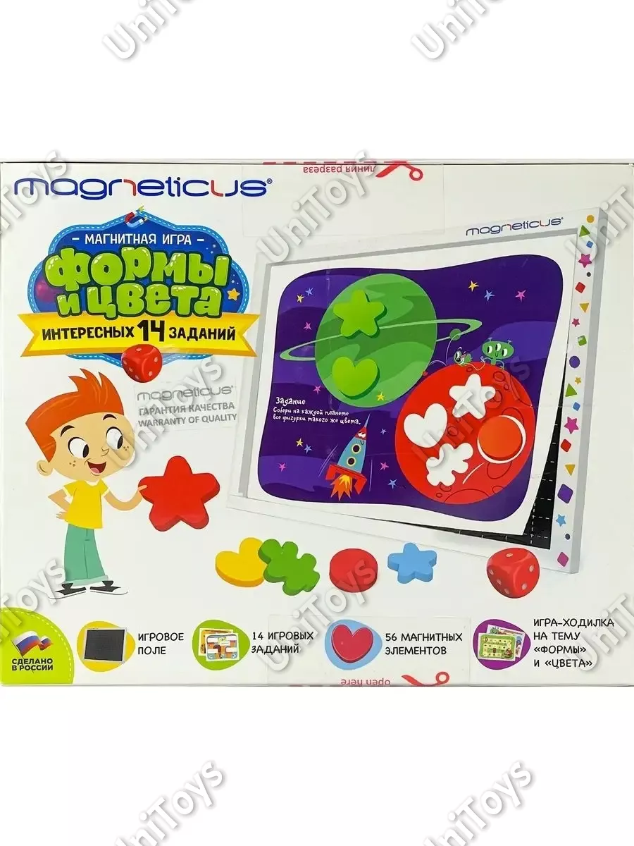 Представляем вам увлекательную магнитную игру с заданиями "Формы и цвета Magneticus" (POL-011) - идеальное развивающее пособие для вашего малыша от 3 лет!