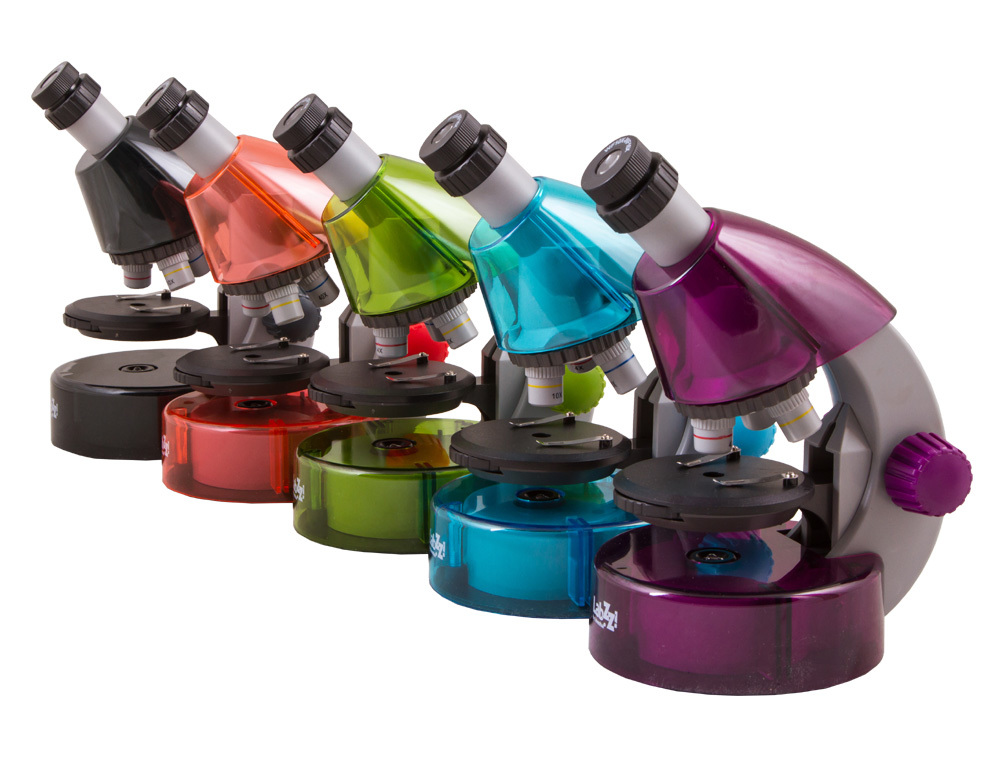 Микроскоп выпускается в цветном полупрозрачном корпусе необычной формы – такой подарок не оставит ребенка равнодушным. Выбрать один из пяти ярких цветов и купить микроскоп Levenhuk LabZZ M101 можно на этой странице. Также здесь вы найдете отзывы на микроскоп Levenhuk LabZZ M101 и руководство по эксплуатации.