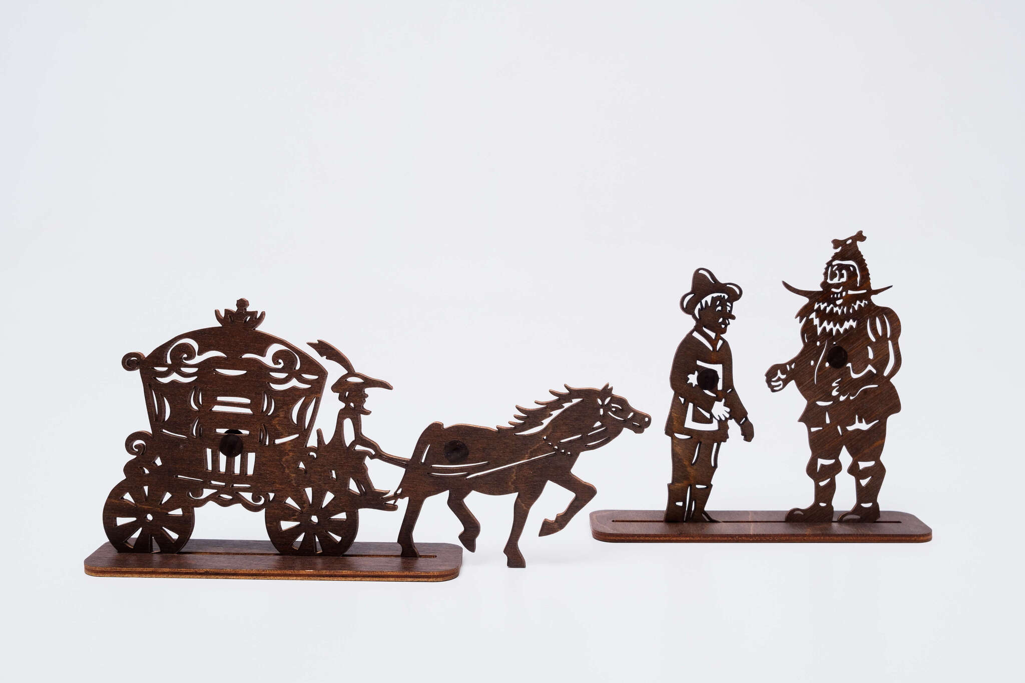 Все фигурки для постановок теневых спектаклей "Крошки в окошке" выполнены из прочного дерева, покрытого безопасным лаком.