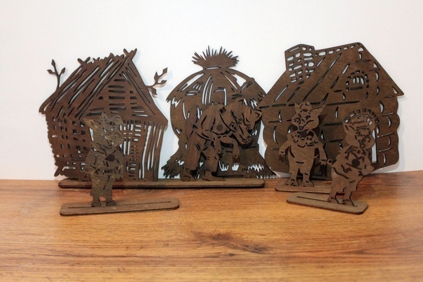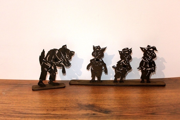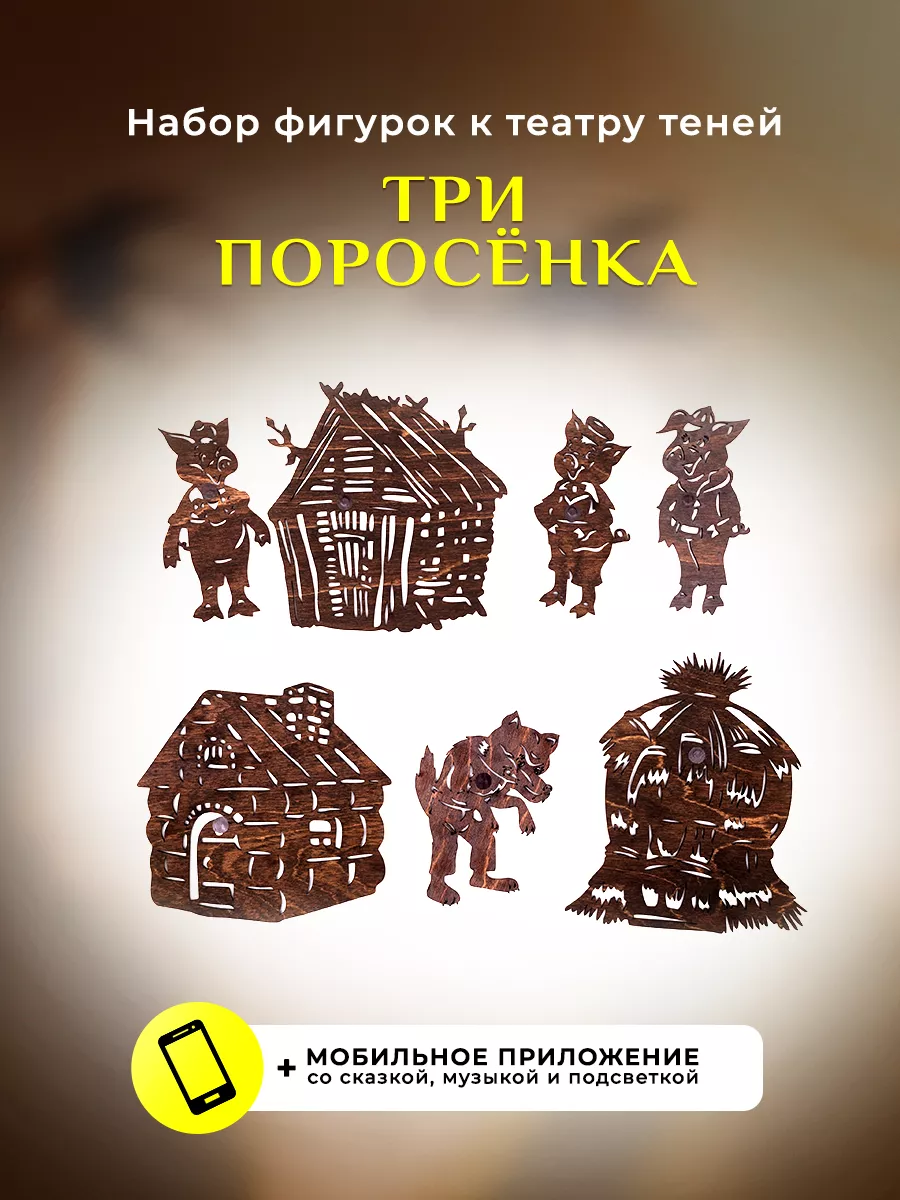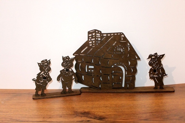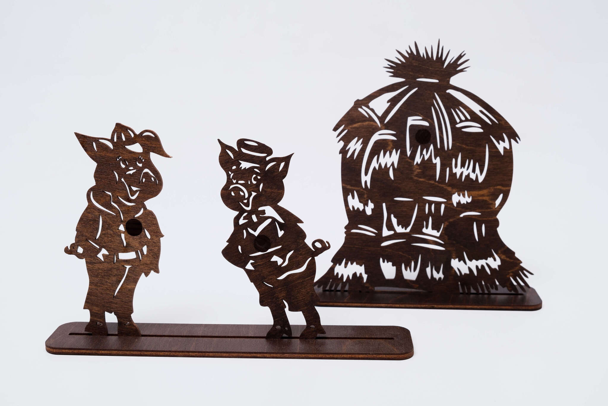 Набор деревянных фигурок ТРИ ПОРОСЁНКА для театра теней "Крошки в окошке" для постановки сказки в театре теней.