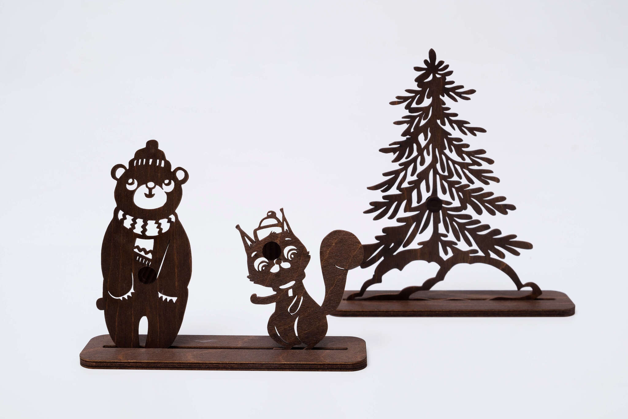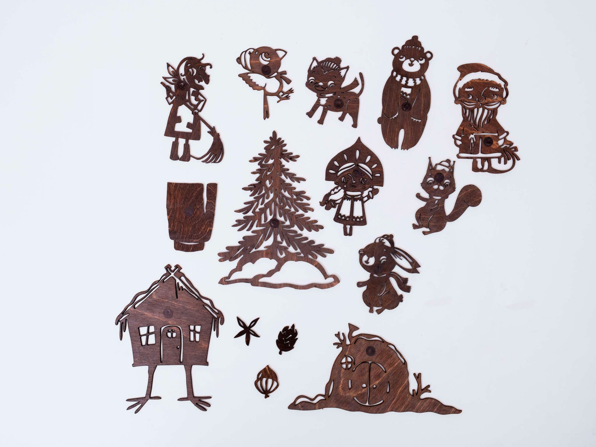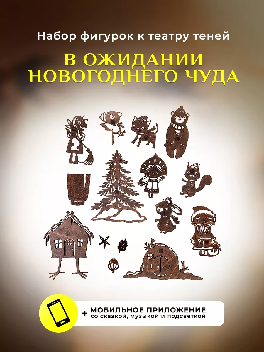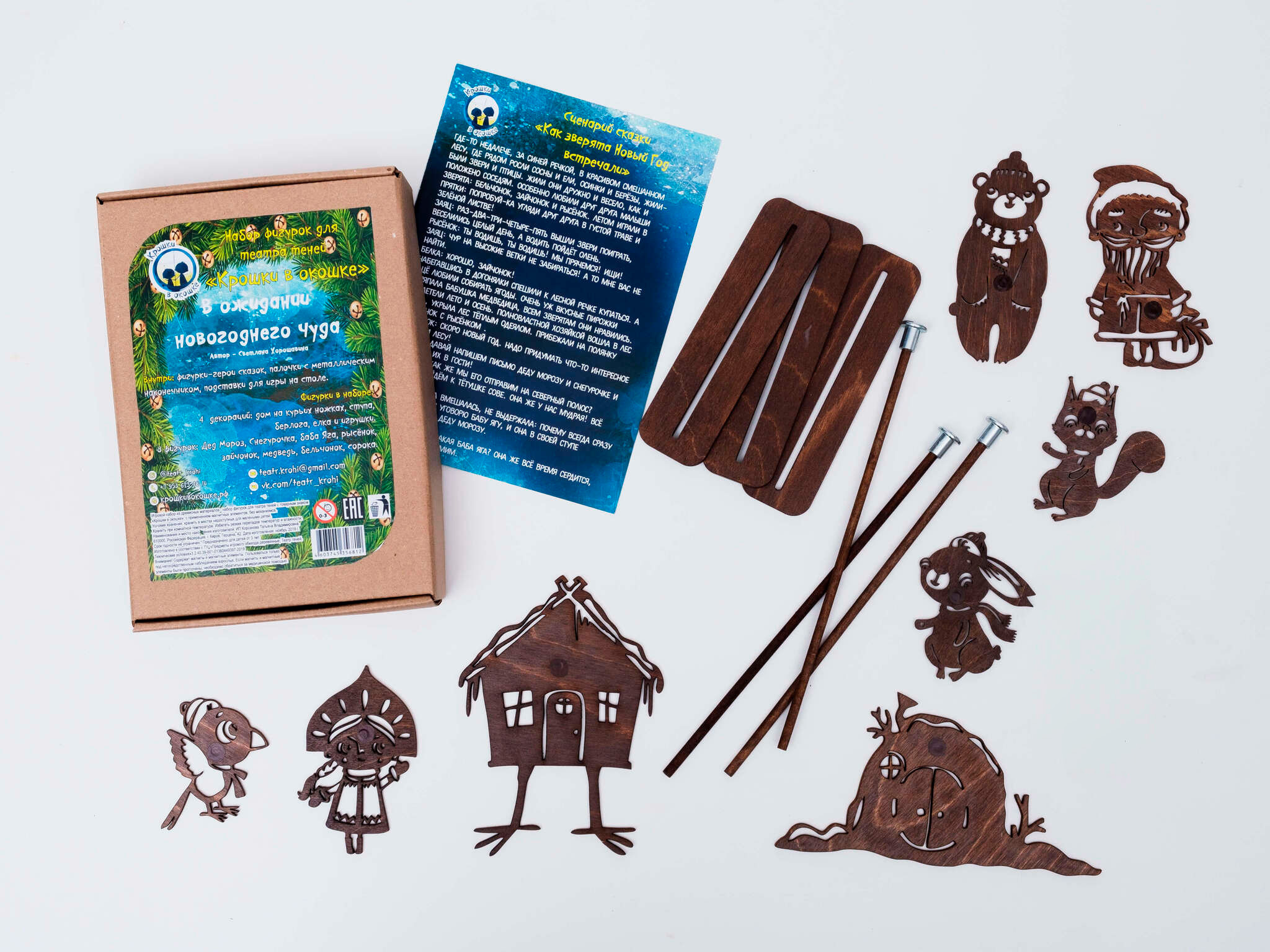 Набор деревянных фигурок В ОЖИДАНИИ НОВОГОДНЕГО ЧУДА для постановки новогодней сказки в театре теней "Крошки в окошке".