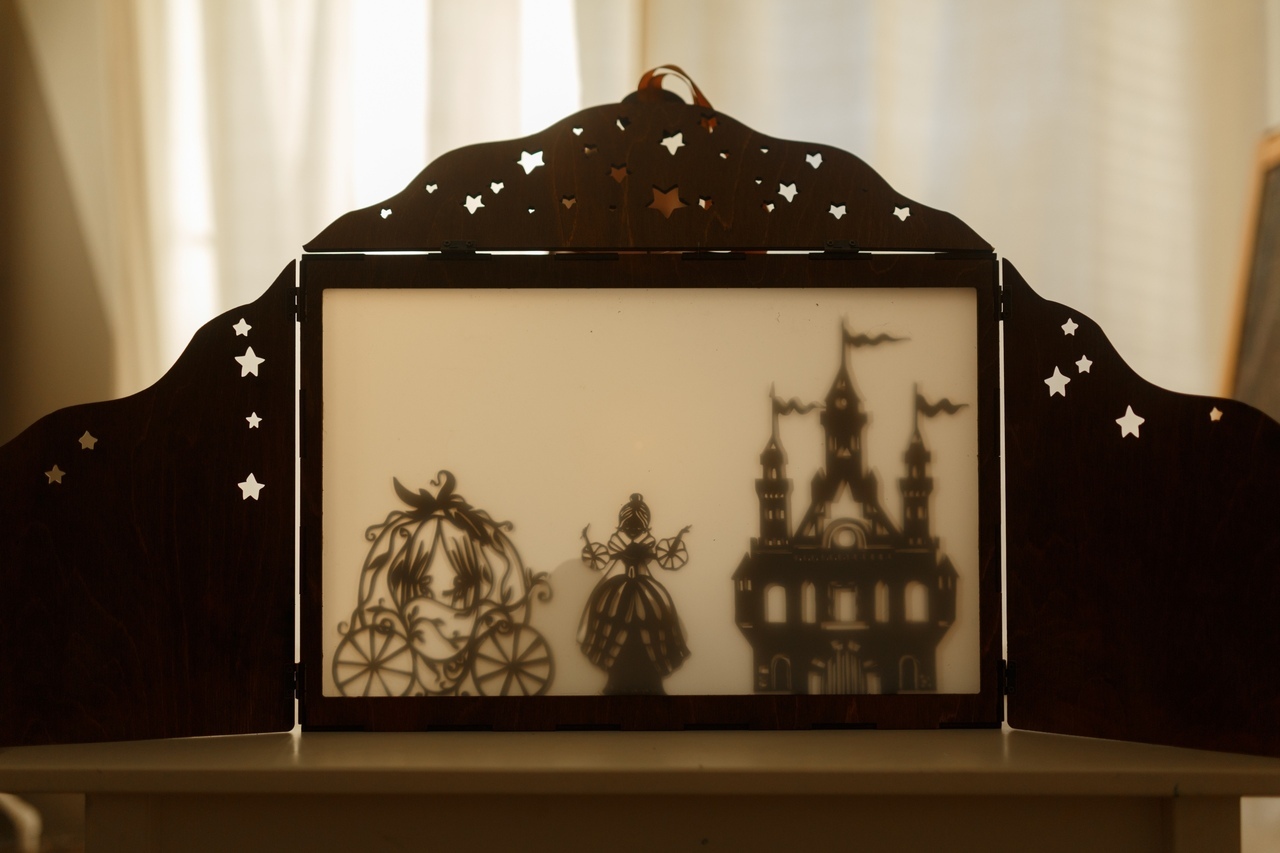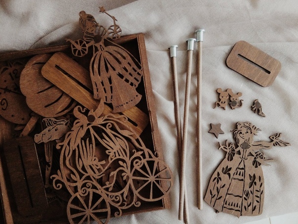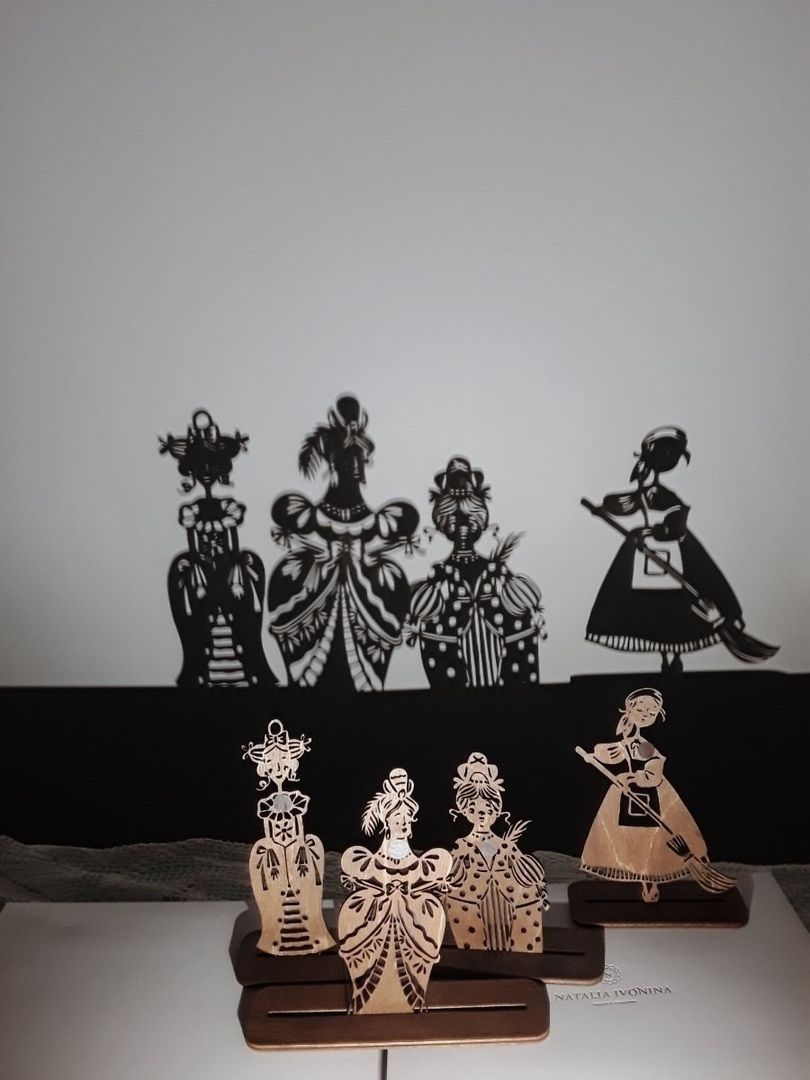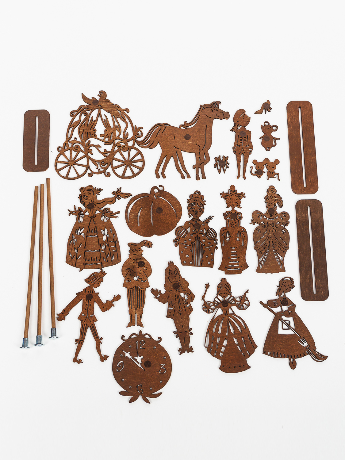 Чудесный набор деревянных фигурок по сказке ЗОЛУШКА для театра теней "Крошки в окошке" для постановки теневого спектакля дома и в детском саду.
