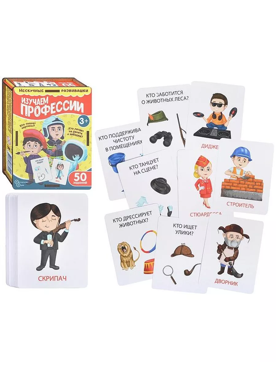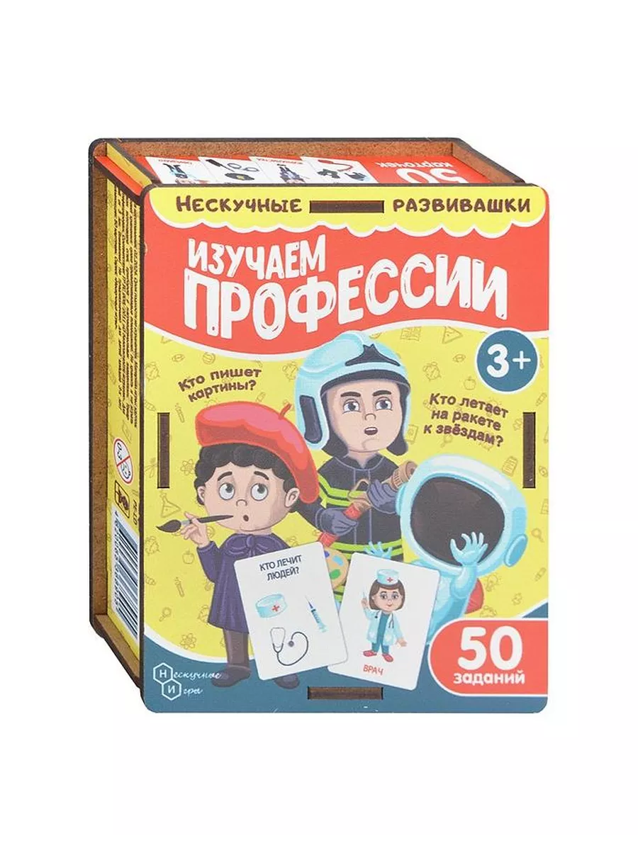 Набор обучающих карточек Нескучные игры "Изучаем профессии", в деревянной коробке 50 заданий.