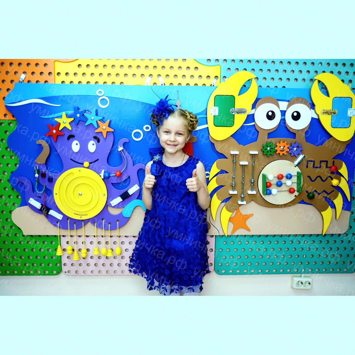 - Раздельное — «Осьминога» и «Краба» размещают на одной, соседних или разных стенах (как обособленные тактильно-игровые комплексы).