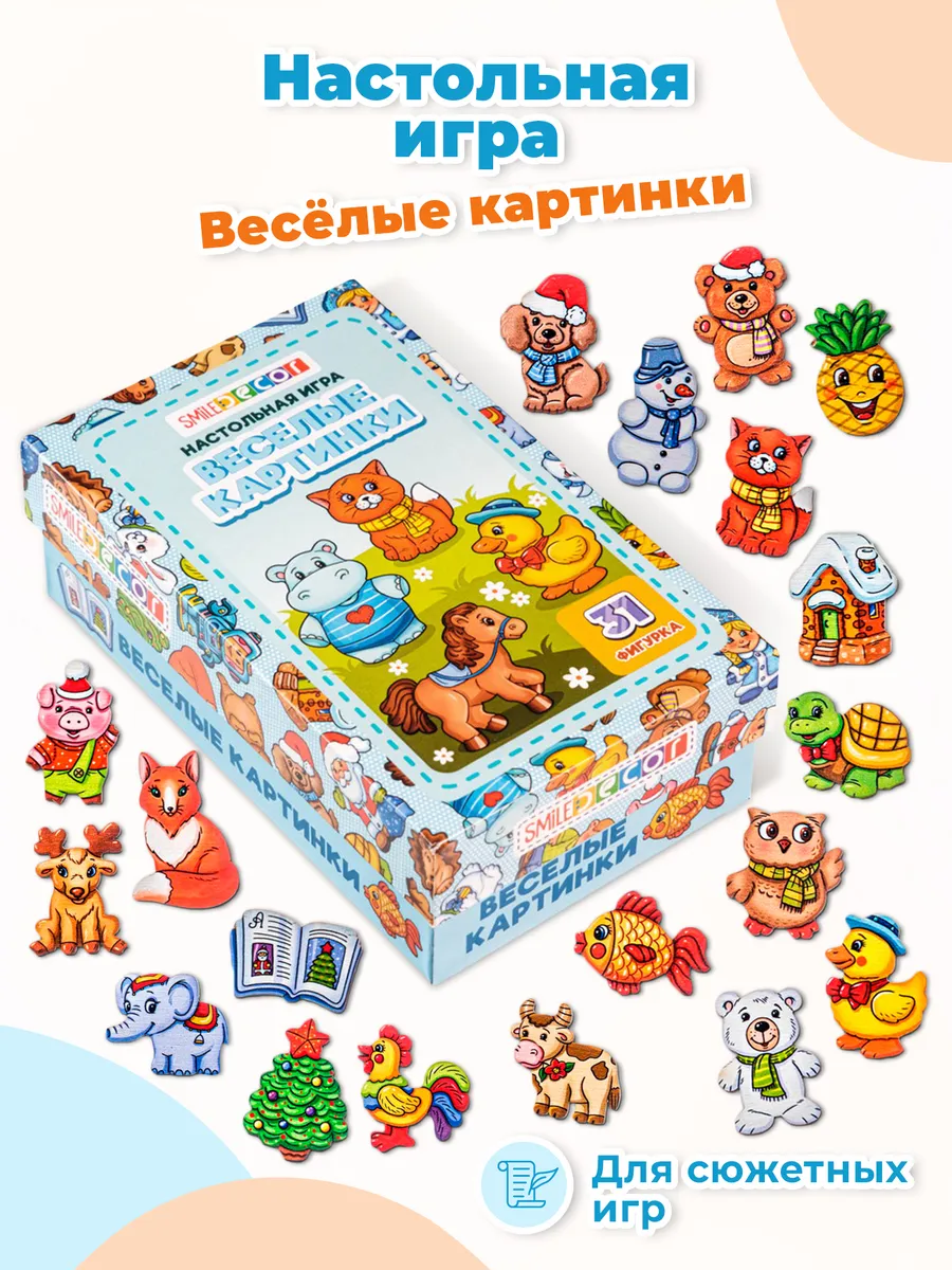 Настольная игра Smile Decor "Веселые картинки" для детей, 31 фигурка для сюжетных игр и адвент-календарей, счетный материал.