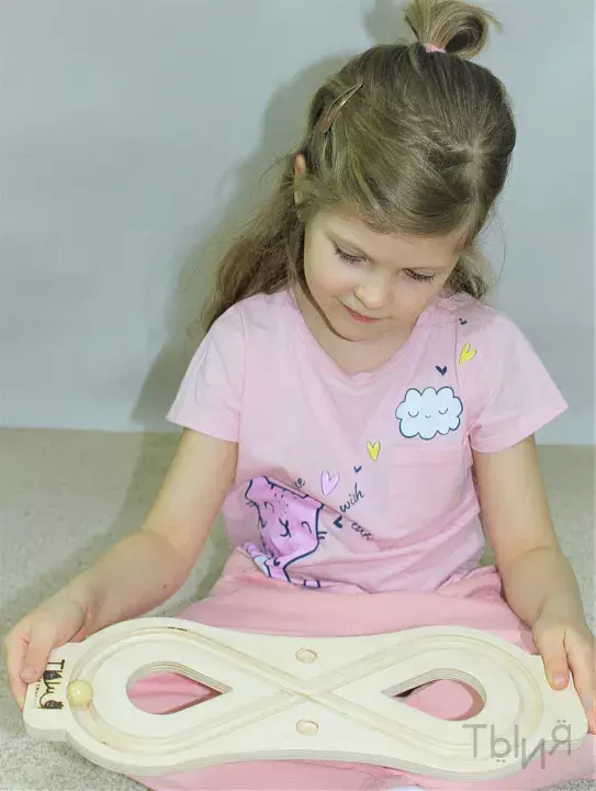 Одним из самых уникальных свойств Нейровосьмерки является возможность следить глазами за мячиком в ее центре. Это не только улучшает зрительную координацию, но и развивает мелкую моторику и реакцию. Ребенок играет с мячиком, при этом двигая руками и прокручивая Нейровосьмерку, что в свою очередь улучшает координацию движений и развивает моторику.