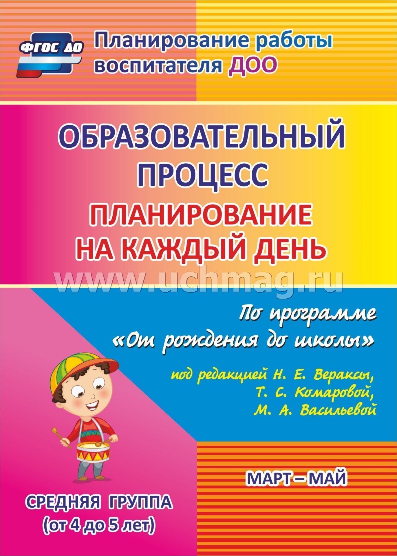 В пособии представлена модель ежедневного планирования деятельности воспитателя, разработанная в соответствии с ФГОС ДО и положениями основной образовательной программы дошкольного образования "От рождения до школы" под редакцией Н. Е. Вераксы, Т. С. Комаровой, М. А. Васильевой (М.: Мозаика-Синтез) для средней группы от 4 до 5 лет, охватывающая весь комплекс содержания и организации жизни и воспитания детей в условиях ДОО на март - май учебного года. Удобное табличное размещение материала на каждый день позволяет воспитателю обеспечить целостность, системность и эффективность всех направлений педагогического сопровождения развития ребенка.