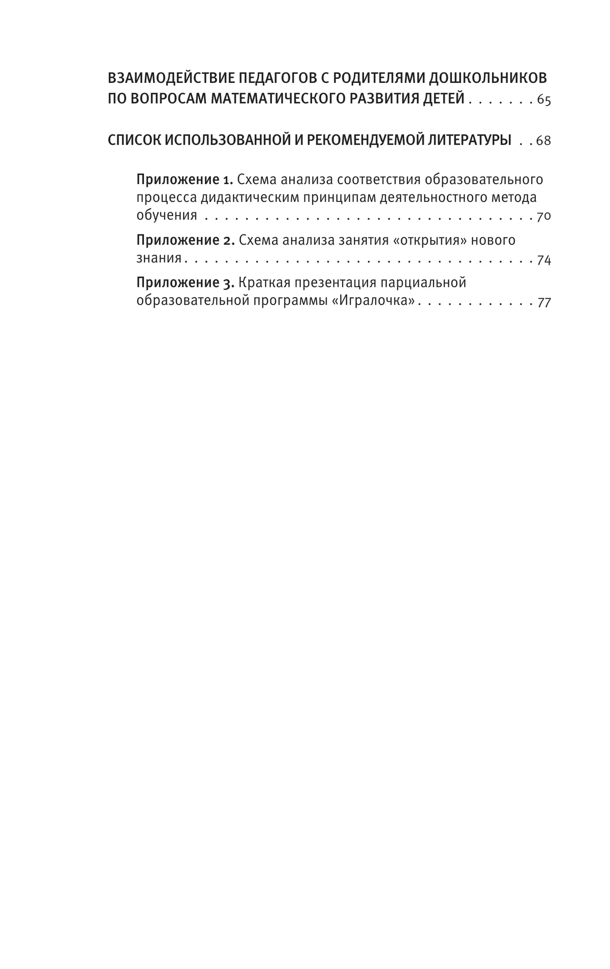 Непосредственным продолжением программы «Игралочка» является курс математики «Учусь учиться» для 1–9 классов начальной и основной школы (авторы Петерсон Л.Г., Дорофеев Г.В., Агаханов Н.Х. и др.). Программа обеспечена современными методическими пособиями, раздаточным и демонстрационным материалом. Адресована широкому кругу специалистов дошкольного образования, имеет разветвленную систему подготовки и методического сопровождения воспитателей на базе НОУ ДПО «Институт системно-деятельностной педагогики». Может быть полезна родителям, студентам педагогических колледжей и вузов.