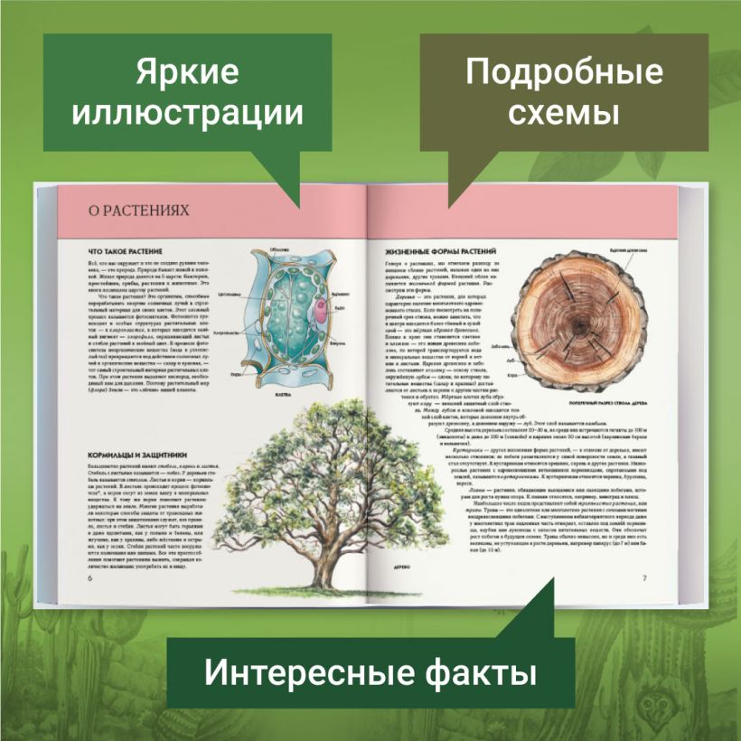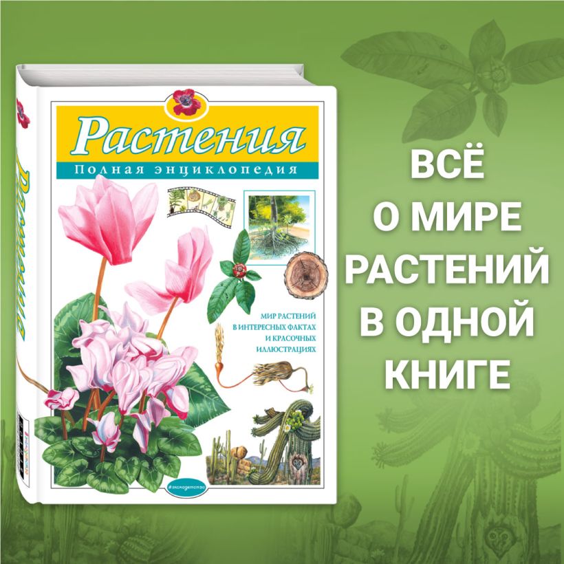 Абсолютно всё о растениях — научные факты и открытия, полезные советы по уходу, классификация, строение, размножение, жизненные формы, красота и польза, история и современность! Эта полная энциклопедия позволит вам погрузиться в такие удивительные темы, как растения в тропическом лесу и в аптеке, на суше и в море, на государственных флагах и в старинных манускриптах, в гробницах фараонов и в научных лабораториях.