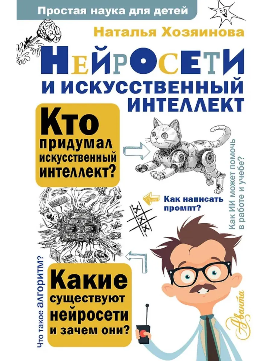 Хозяинова Н.А. Нейросети и искусственный интеллект Вы каждый день пользуетесь искусственным интеллектом, даже не замечая этого! Умные рекомендации в тик-токе, голосовые помощники вроде Алисы и Сири, даже крутые фильмы со спецэффектами — везде работает ИИ. Но как же устроен этот загадочный искусственный интеллект? Кто его придумал и может ли он действительно мыслить как человек? Эта книга — ваш первый шаг к пониманию технологий, которые меняют наш мир. Станьнете самым продвинутым экспертом по ИИ среди своих друзей!