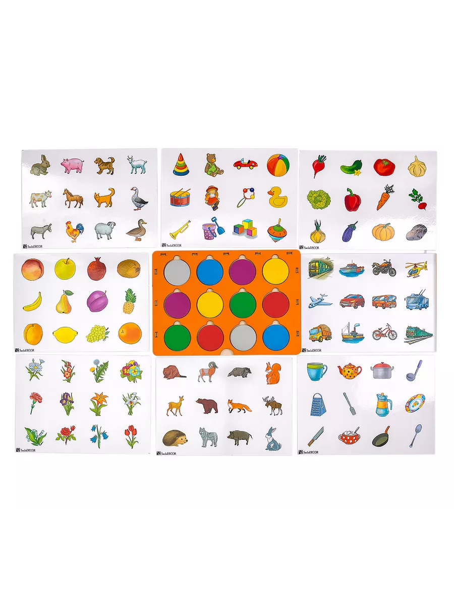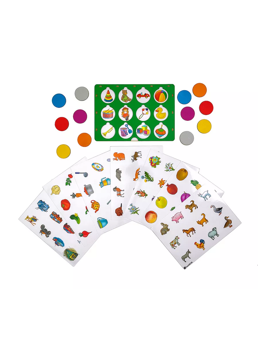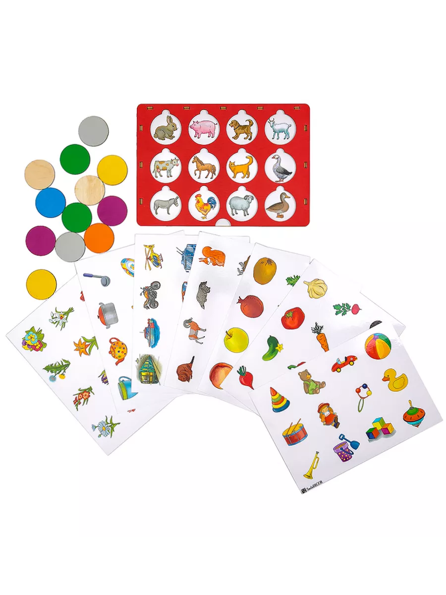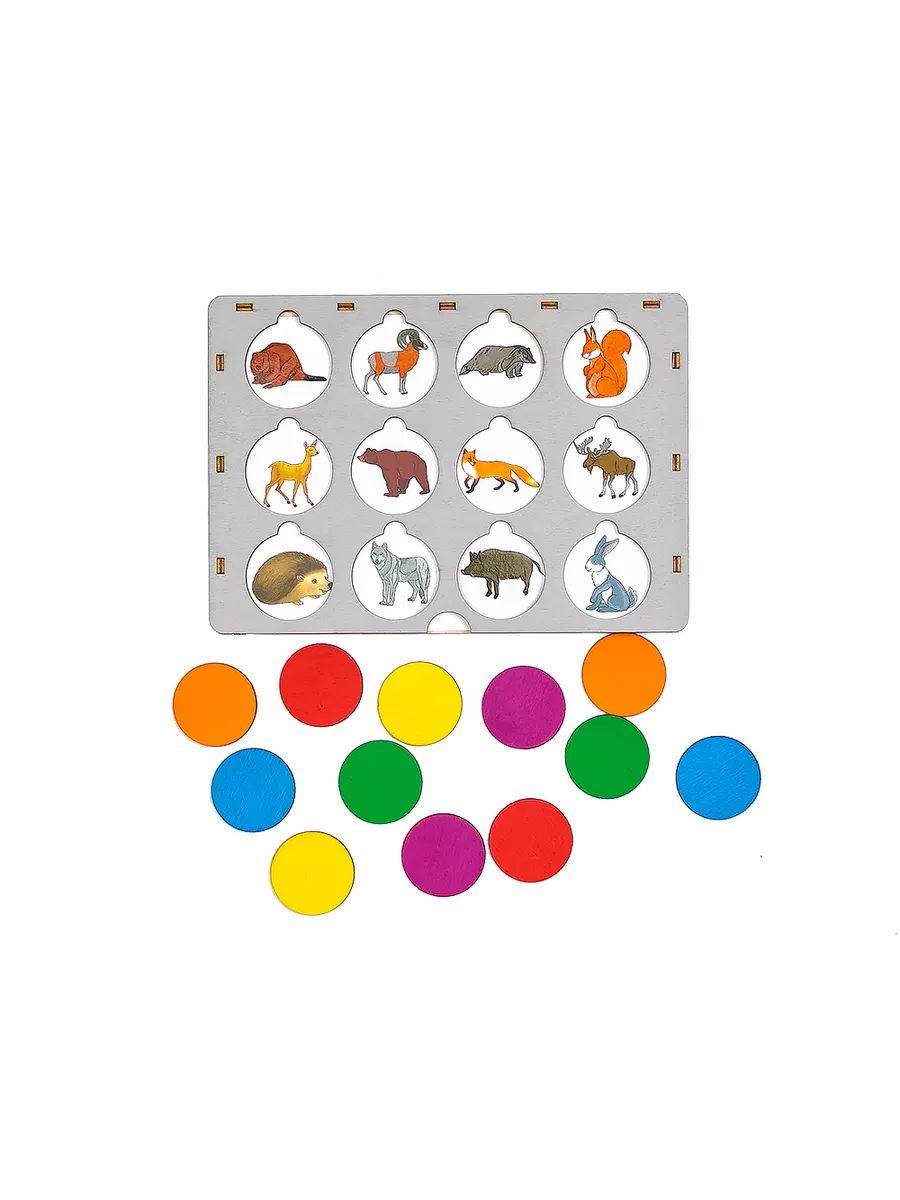 На деревянном основании есть окошки, за которыми скрываются различные животные. Каждое окошко можно закрыть кружочком-вкладышем. Ребенок выясняет, кто же скрывается в каждом окошке. Занимаясь с этой игрушкой, ребенок увлеченно открывает кружочки, тренирует мелкую моторику и с огромным интересом изучает то, что спрятано внутри.