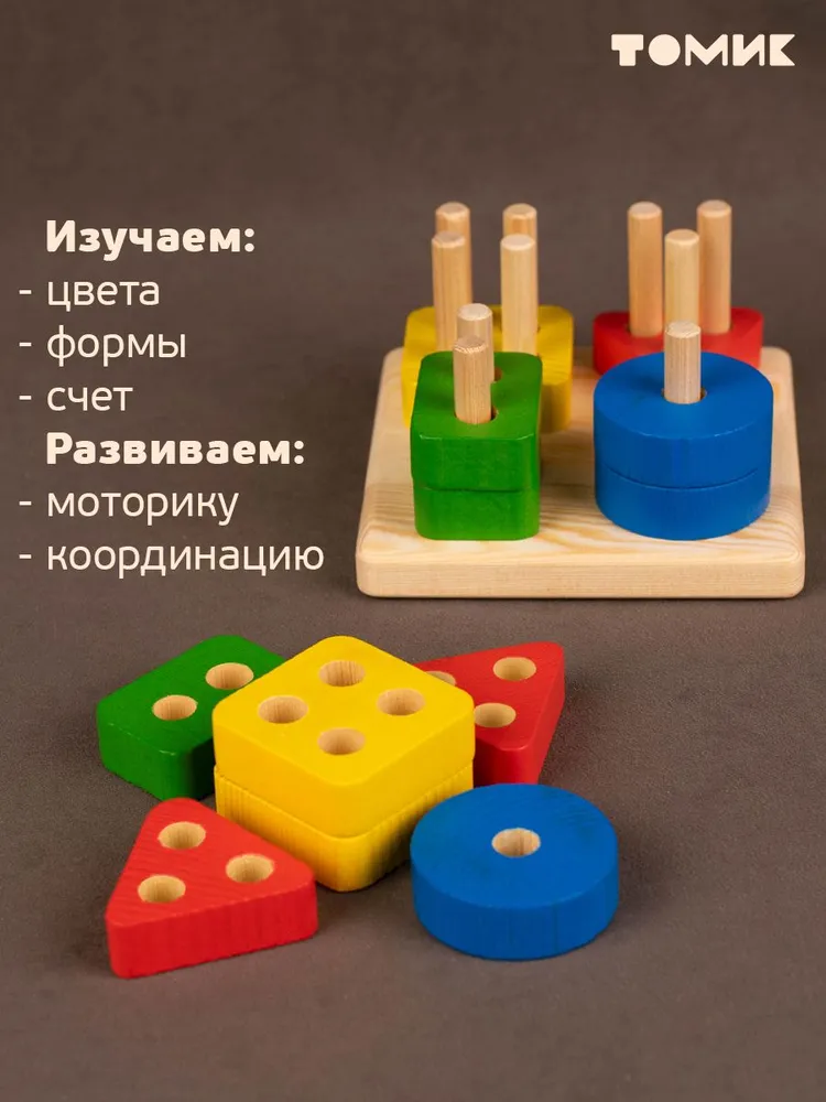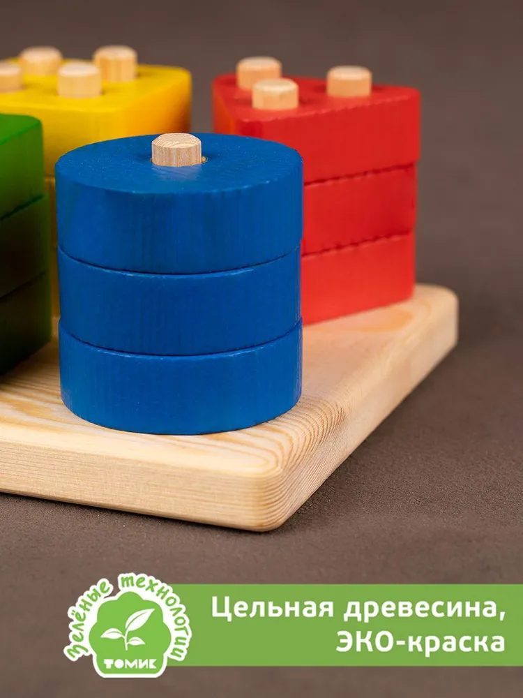 Задачей фабрики Томик является здоровье и безопасность вашего ребенка, поэтому при производстве игрушек и товаров для самых маленьких мы используем экологичные , абсолютно безвредные для детей материалы, элементы сортера выполнены из дерева с нанесением краски на водной основе, используются насыщенные цвета. Тактильный контакт с этим материалом оказывает положительное воздействие на сенсорное развитие ребенка, приятные на ощупь.