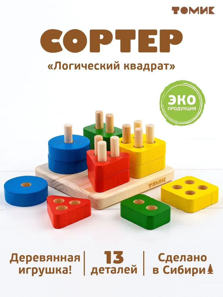 Сортер "Логический квадрат" (13 элементов, дерево), Томик