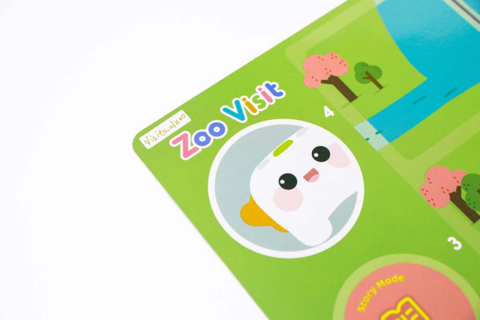Поля для передвижения робота с встроенными «метками» голосовых сообщений, робот программируется кнопками «вперед-назад-влево-вправо» на корпусе робота. Подъезжая к определенной клетке со встроенным головным сообщением, робот произносит предустановленный озвученный текст, давая инструкции или команды для программирования робота. В комплекте 5 двусторонних тематических полей с заданиями и одно пустое поле для наклеивания интерактивных наклеек