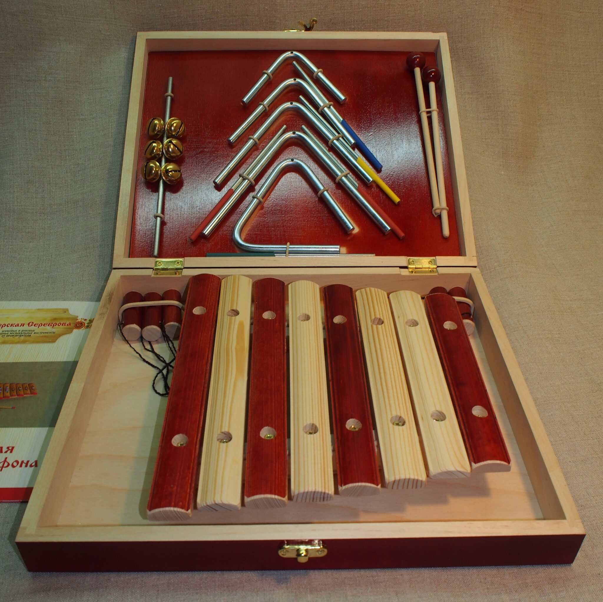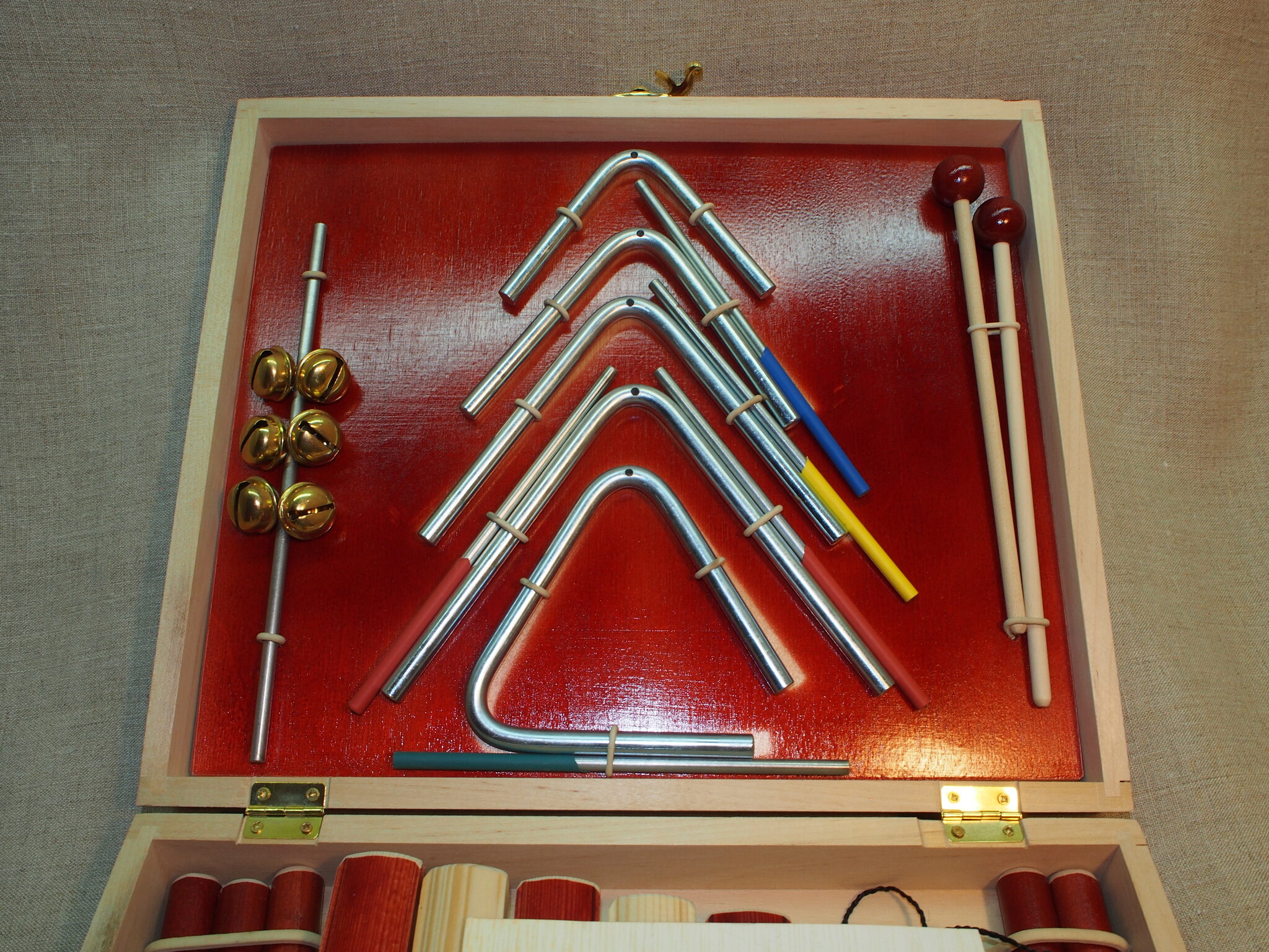 Профессиональный комплект музыкальных инструментов из металла «Ёлочка». Привлекает внимание комплектация набора, подобранная как для музыкантов-профессионалов, так и музыкальных школ, училищ и музыкальных работников детских садов. Применение настоящего комплекта для семейного музицирования только приветствуется.