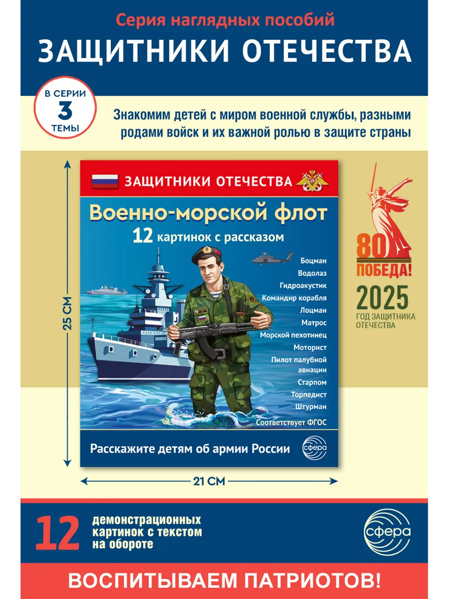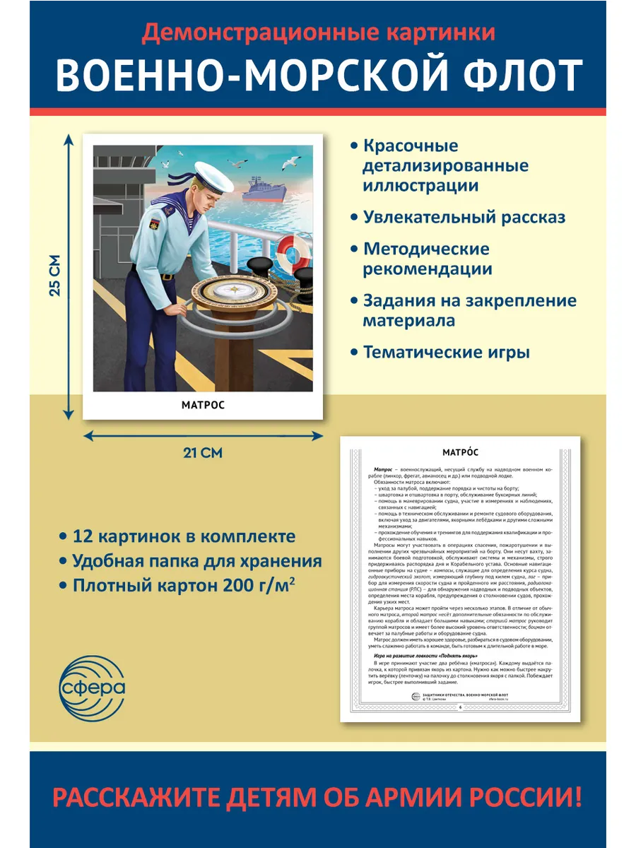 Защитники Отечества: "Военно-морской флот" 12 карточек с текстом на обороте
